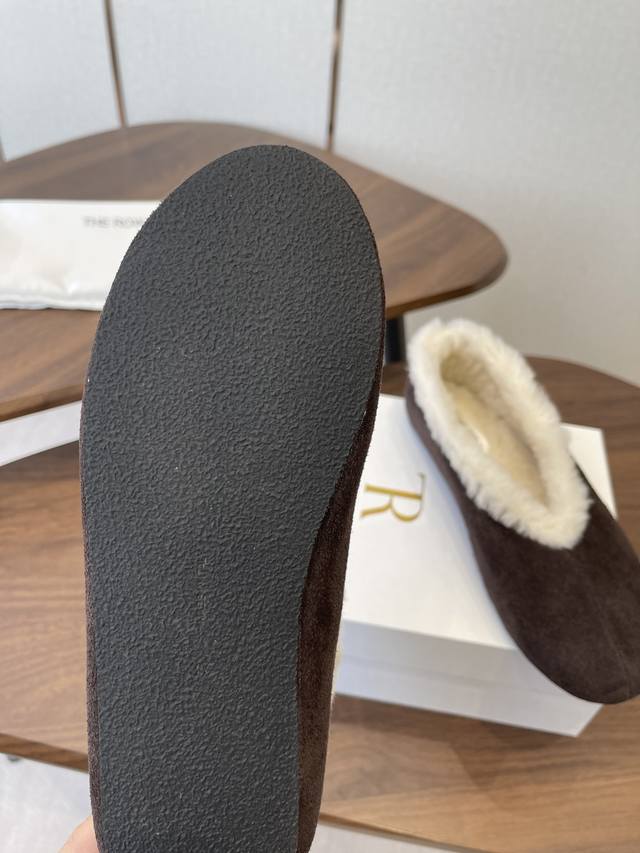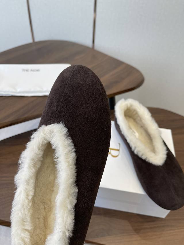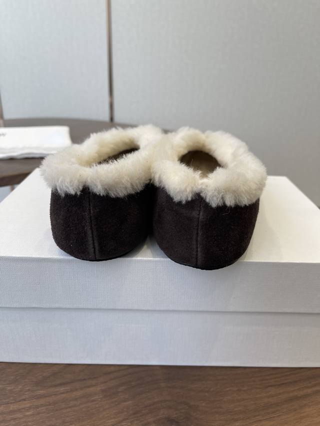 Therow新款羊毛包子鞋 乐福鞋 Ddd 简直就是本年度最美丽的女鞋嘛,一穿上就散发出法式优雅的气质,高级又时髦,简直是可盐可甜,文艺范儿十足,气质爆棚! Ddd 好看又好穿,简直就是风魔全球的经典之作,特别是那柔软细腻的鳄鱼纹牛反毛皮面料,让这款芭蕾舞鞋立马变得与众不同,质感超级棒! Ddd 鞋头的设计简直是完美无缺,弧度恰到好处,柔软而有弹性,整体看起来既大气又不失时尚感,简约的鞋面设计巧妙地融入了时髦元素,带条设计更是贴心至极,无论你是宽脚、胖脚还是瘦脚都能轻松穿出美感。 Ddd 鞋子的鞋型设计简