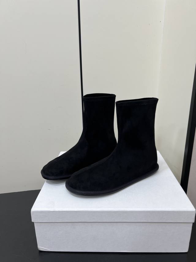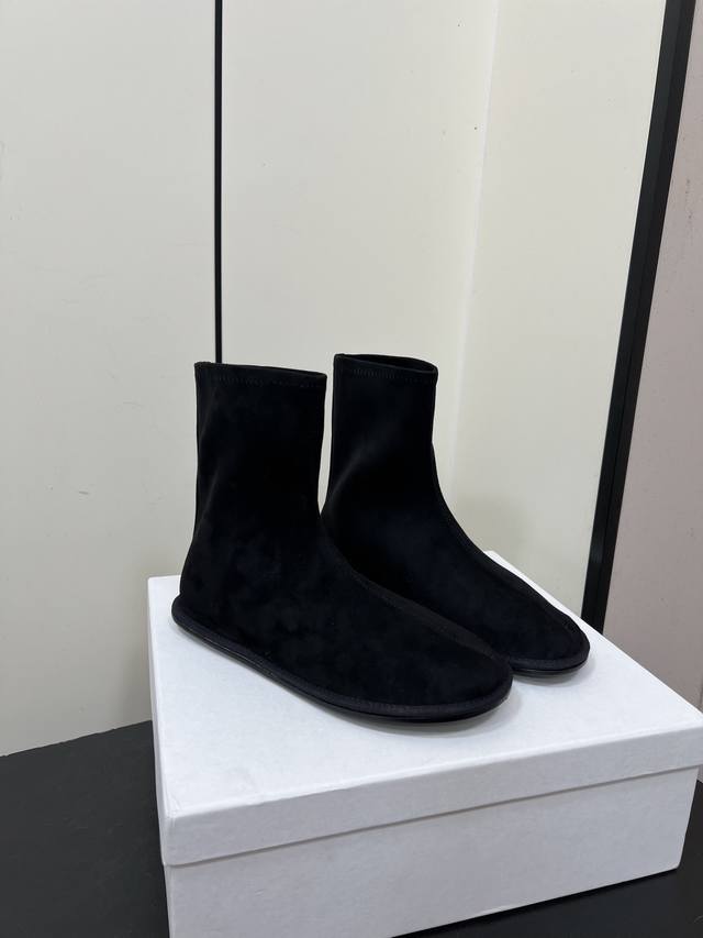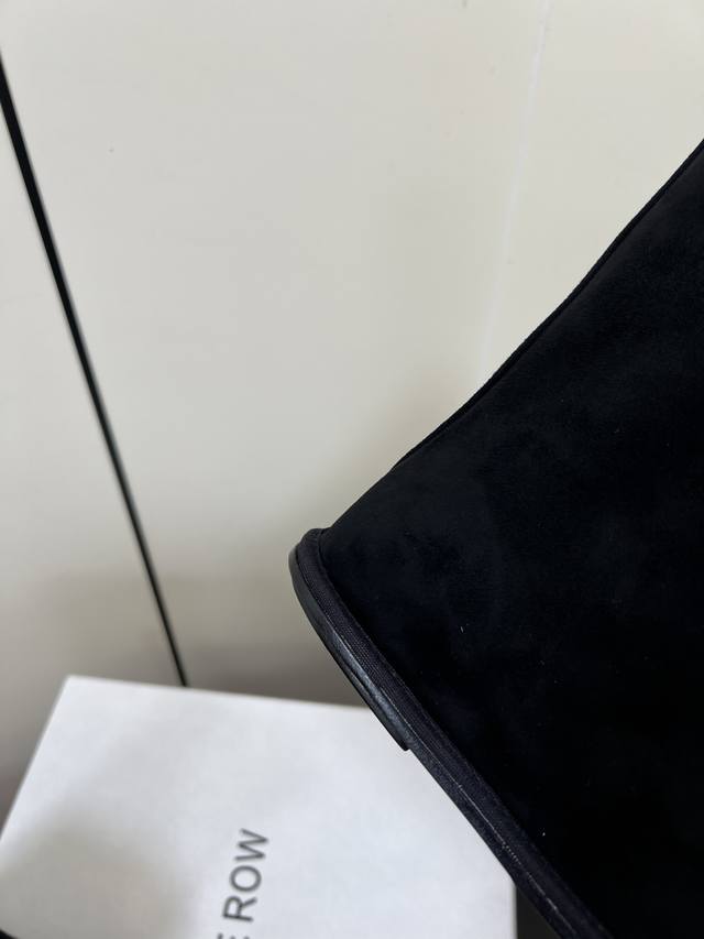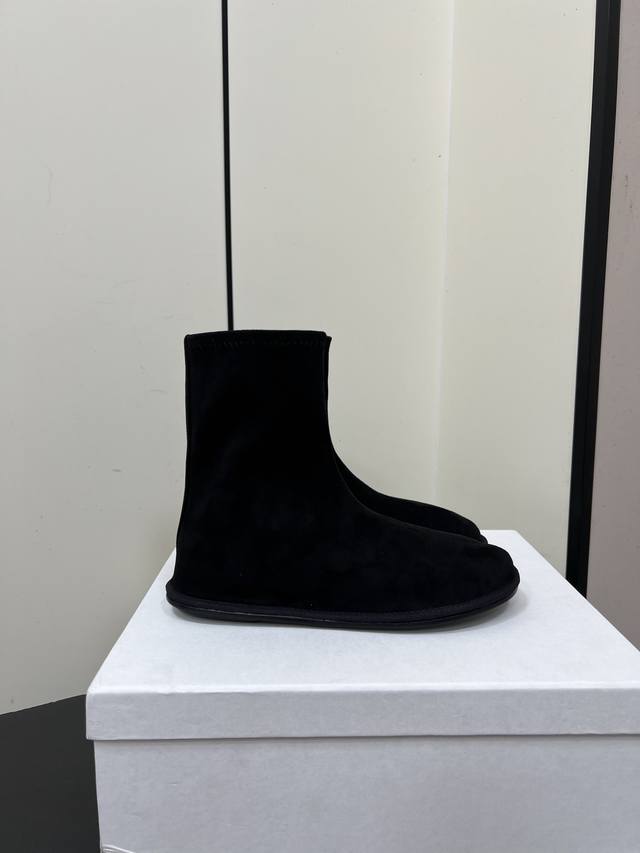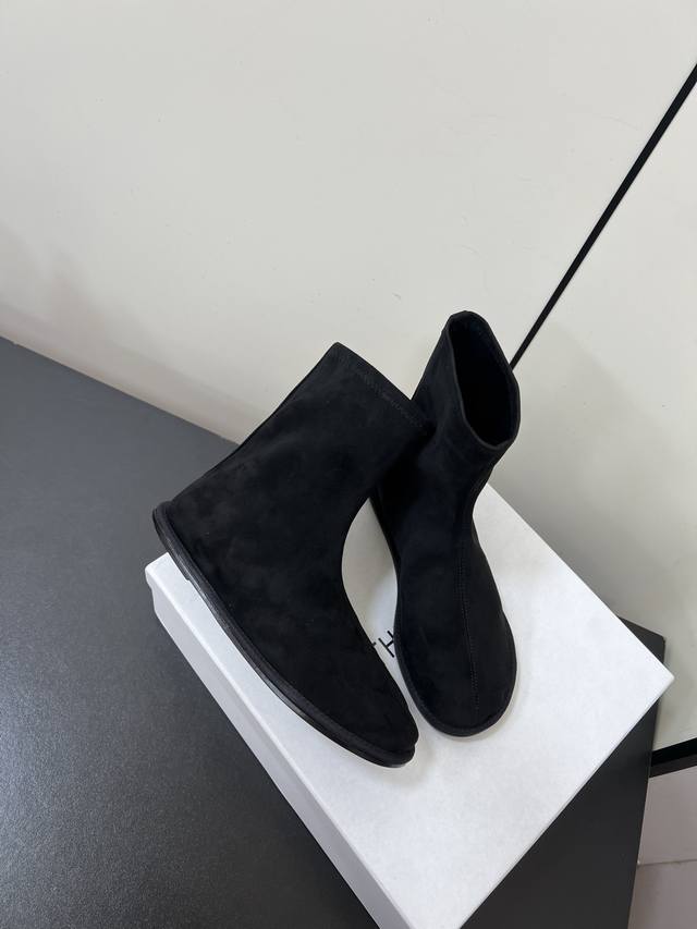 Therow新款高跟弹力靴瘦瘦短靴 采用弹力的材质,质感细腻。靴型是修身的短筒设计,侧边有拉链,方便穿脱,能很好地贴合脚踝线条。增添了精致感;搭配细跟设计,提升了整体的优雅度与女性魅力。 可搭配黑色紧身裤或皮质半裙,上身搭配西装外套,打造干练的职场风;也能与黑色丝绒连衣裙搭配,展现复古优雅的晚宴风格。 鞋面:弹力羊猄 内里:羊皮 大底:真皮大底 Size:35-40 40定制不退换