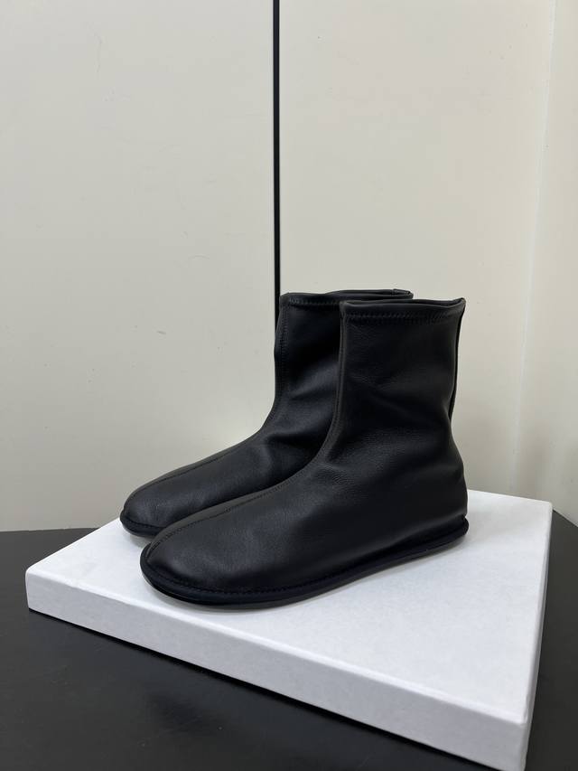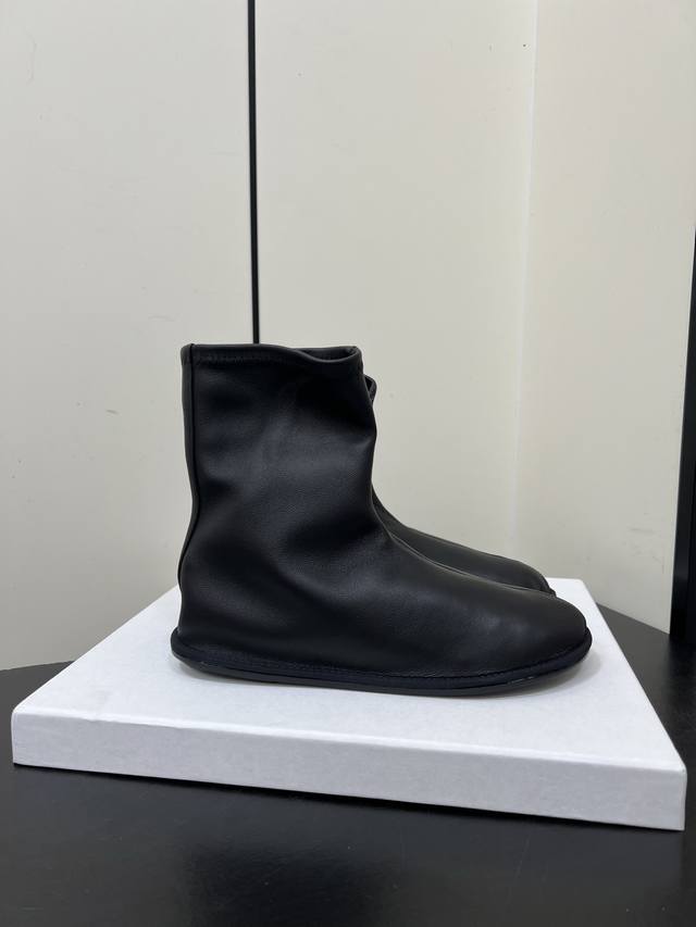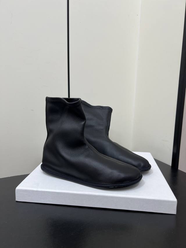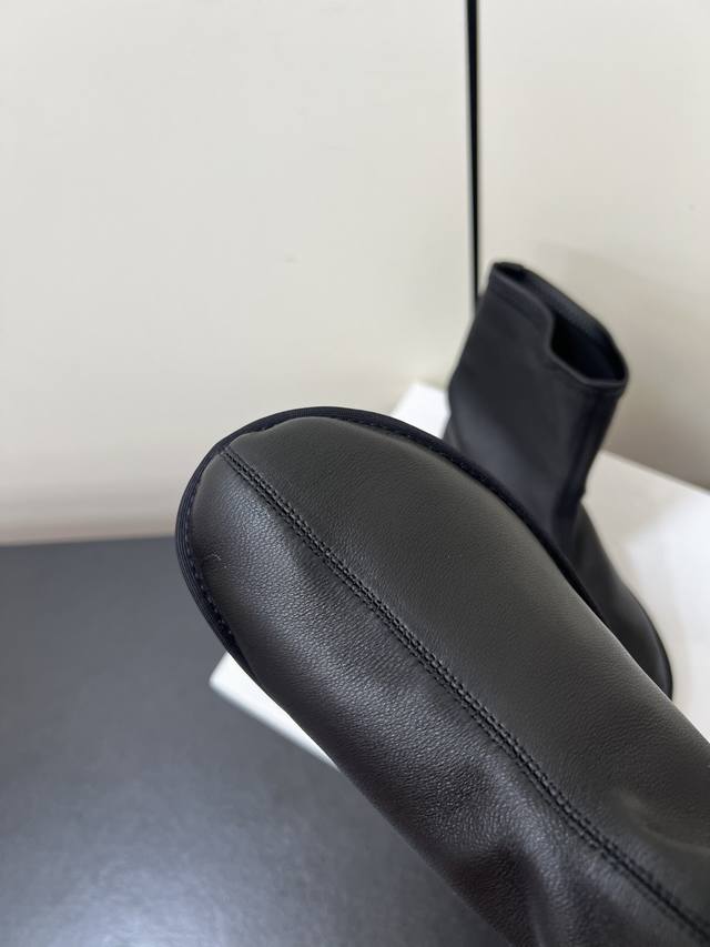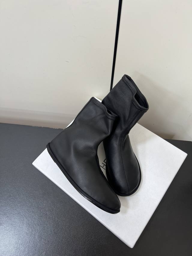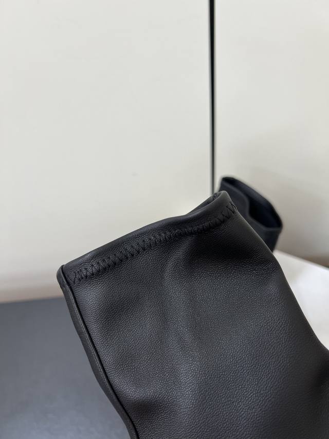Therow新款高跟弹力靴瘦瘦短靴 采用弹力的材质,质感细腻。靴型是修身的短筒设计,侧边有拉链,方便穿脱,能很好地贴合脚踝线条。增添了精致感;搭配细跟设计,提升了整体的优雅度与女性魅力。 可搭配黑色紧身裤或皮质半裙,上身搭配西装外套,打造干练的职场风;也能与黑色丝绒连衣裙搭配,展现复古优雅的晚宴风格。 鞋面:弹力羊皮 内里:羊皮 大底:真皮大底 Size:35-40 40定制不退换