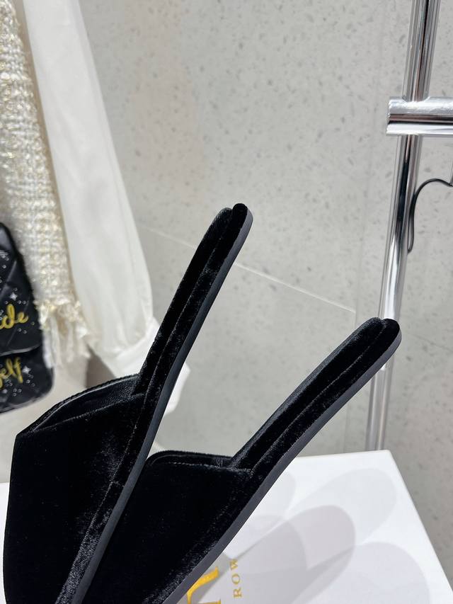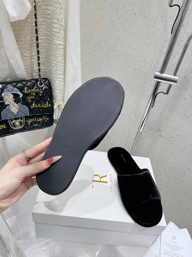 Therow 夏季新款极简时髦平底拖鞋 进口天鹅绒 羊皮面料 羊皮内里垫脚 原版开模定制耐磨橡胶底码数:35-39 40 定做不退换