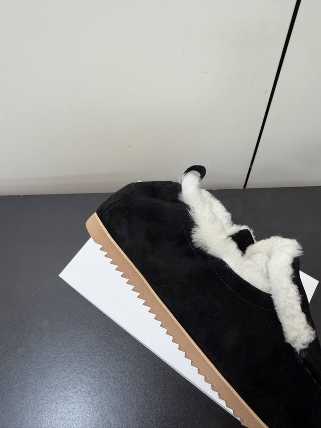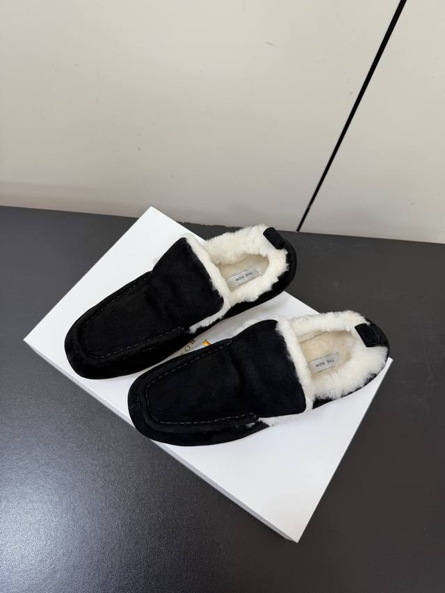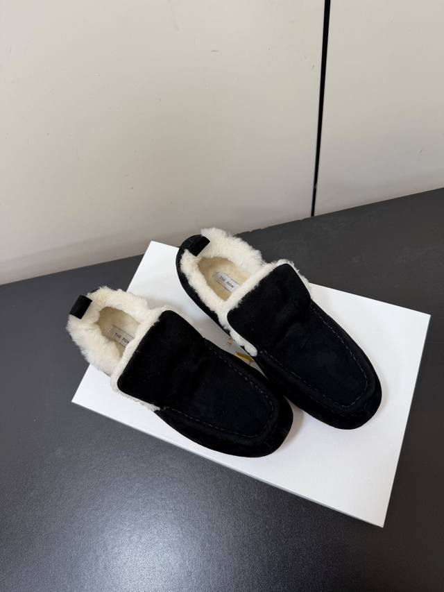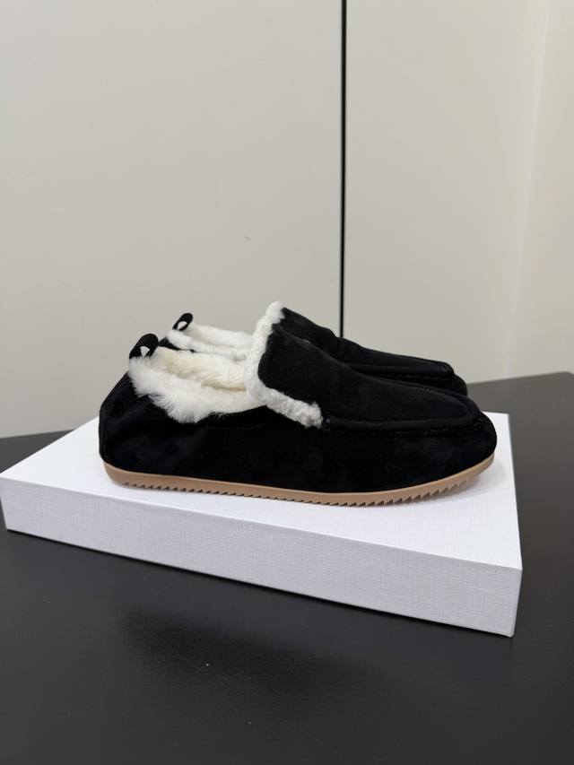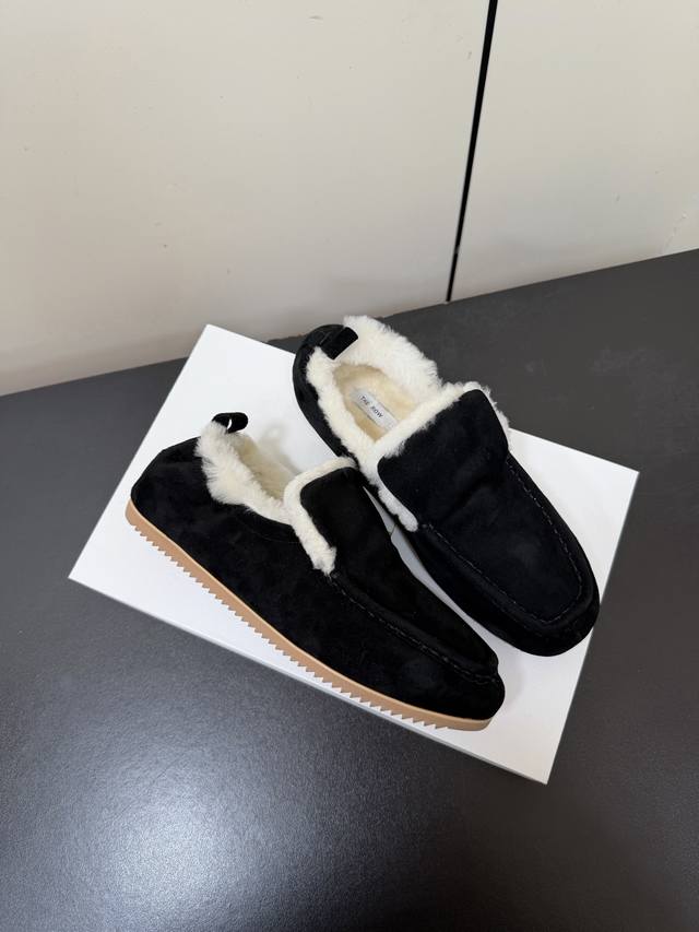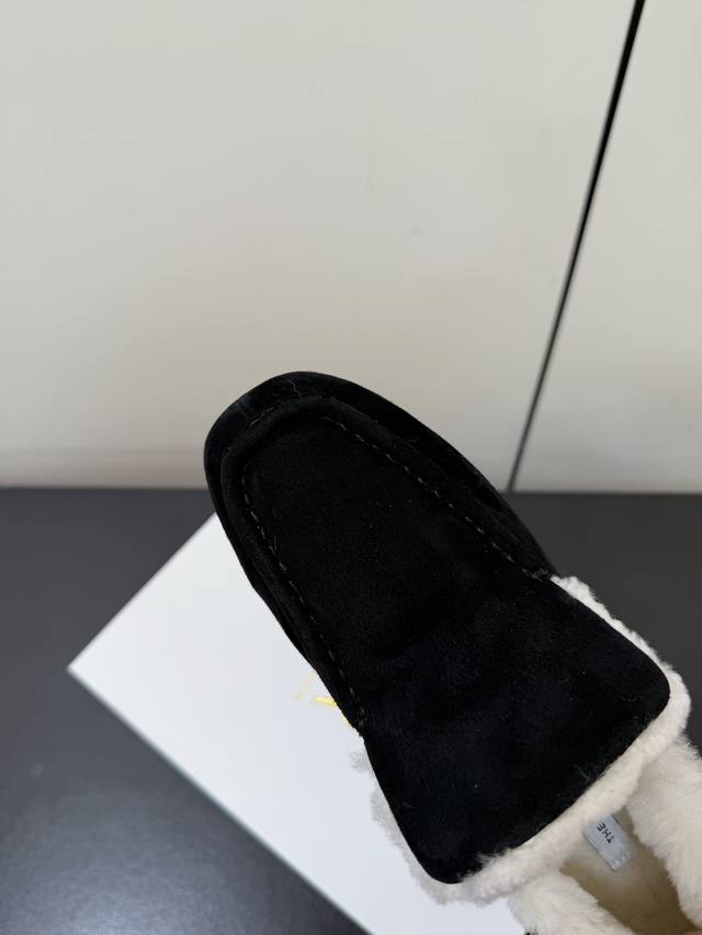 Therow 秋冬加绒款乐福鞋 DDD 鞋面采用细腻反绒皮,触感柔软高级;鞋口内侧添加毛绒衬里,兼具保暖性与亲肤质感,适合秋冬穿着。鞋身搭配金属扣带装饰,简约中注入精致感;圆头鞋型贴合脚型,低帮设计利落不拖沓,整体风格极简又不失辨识度。 DDD 融合乐福鞋的经典优雅与毛绒元素的温暖随性,呈现出“极简轻奢+舒适休闲”的双重风格,适配多种穿搭场景。日常米色款与白色毛绒袜、过膝羊绒裙组合,毛绒鞋口与袜子、裙装的柔软质感呼应,打造温暖甜美的冬日造型。 DDD 鞋面:羊猄 DDD 内里:进口澳洲羊羔毛 DDD 大底