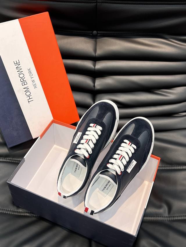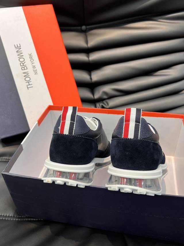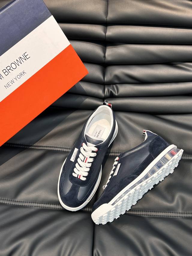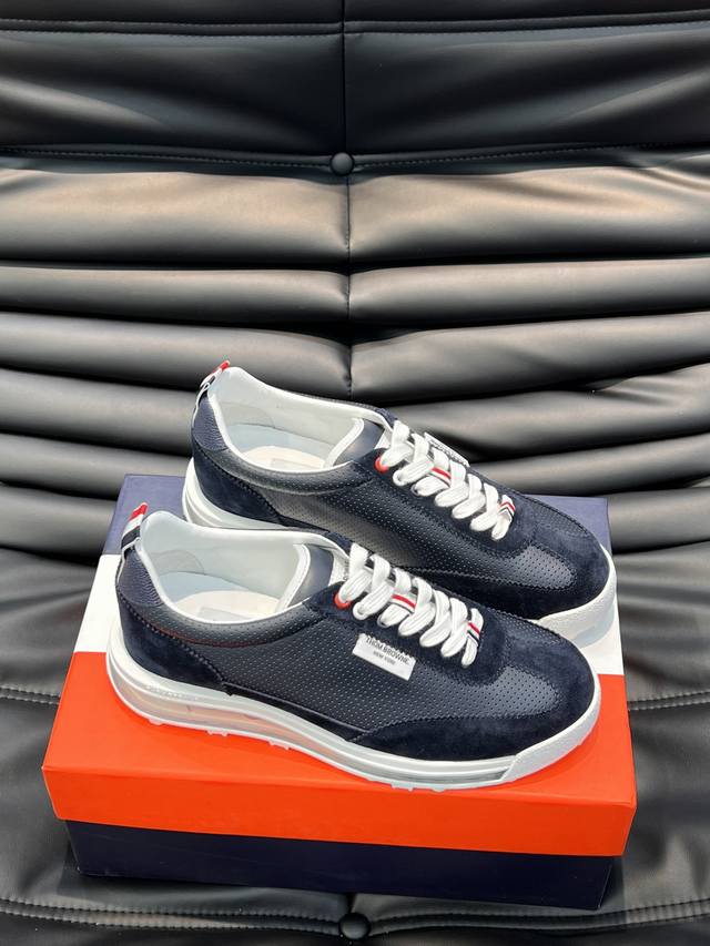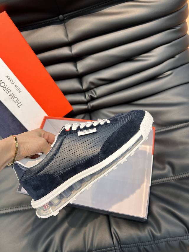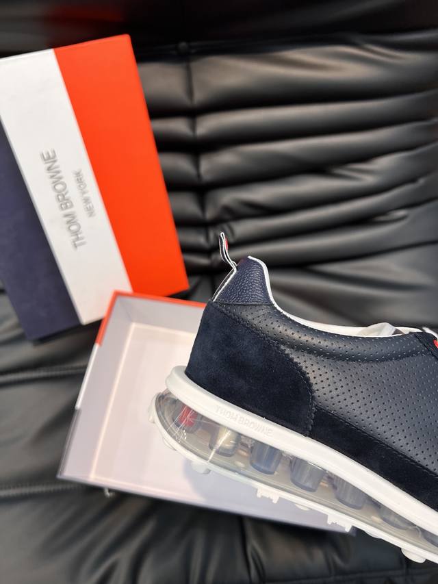 Tho* Brown* 气垫休闲运动鞋,以流畅线条构建简洁外观,结合清爽配色,更显活力满满。此外,单品还以细节处的条纹装饰吸引眼球,百搭时尚单品,鞋面头层牛皮拼接进口原版布面,撞色设计,头层牛皮内里,私模气垫原版大底! Size:38-44