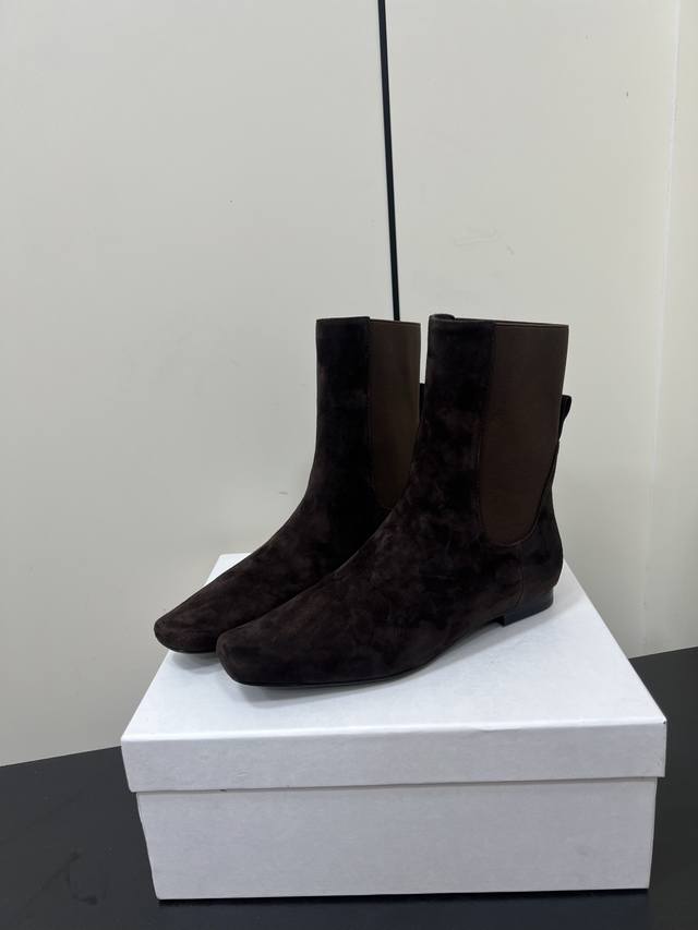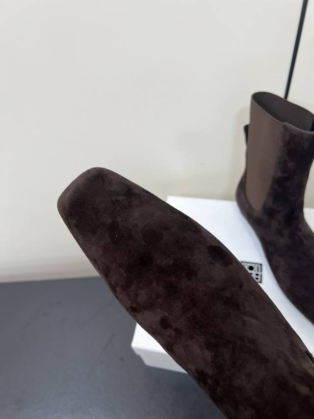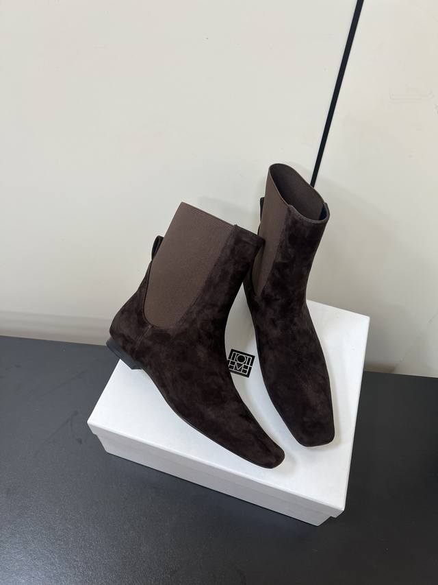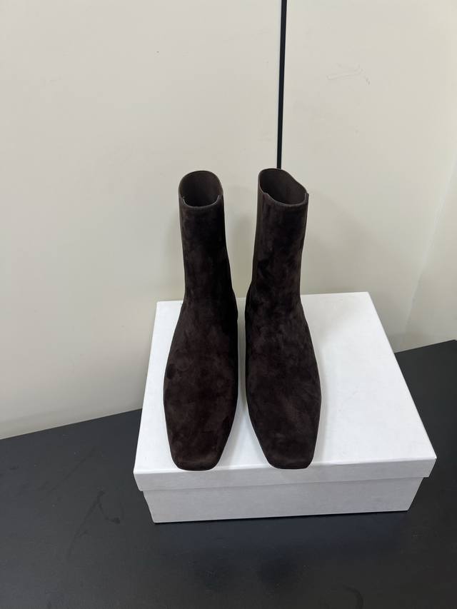 Toteme 秋冬新款方头短靴 Toteme在打造高级感这点从来就没输过 一双简约干练、低调时髦的靴子 没有鲜艳的色彩和繁杂的设计,仅凭1Cm的跟和利落时髦的方