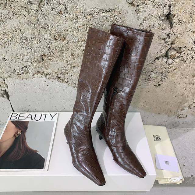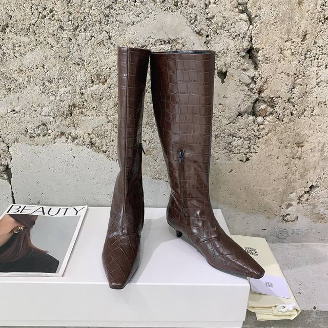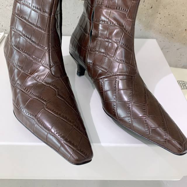 Toteme 秋冬新款猫跟靴 Toteme在打造高级感这点从来就没输过一双简约干练、低调时髦的靴子没有鲜艳的色彩和繁杂的设计,仅凭2Cm的小跟和利落时髦的方头设计就能气场全开,高级感十足原版订制压纹牛皮 牛皮面料,羊皮内里,意大利进口真皮大底,码数35-39# 40#订做不退换