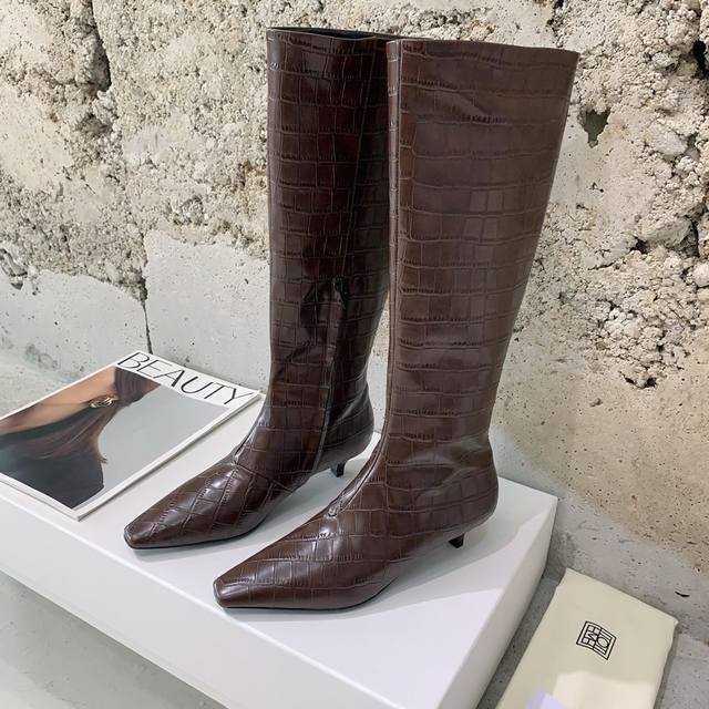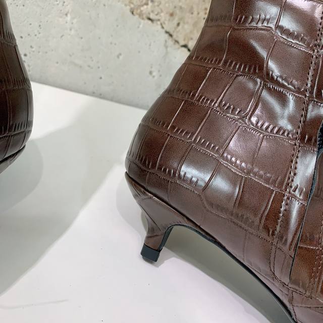 Toteme 秋冬新款猫跟靴 Toteme在打造高级感这点从来就没输过一双简约干练、低调时髦的靴子没有鲜艳的色彩和繁杂的设计,仅凭2Cm的小跟和利落时髦的方头设