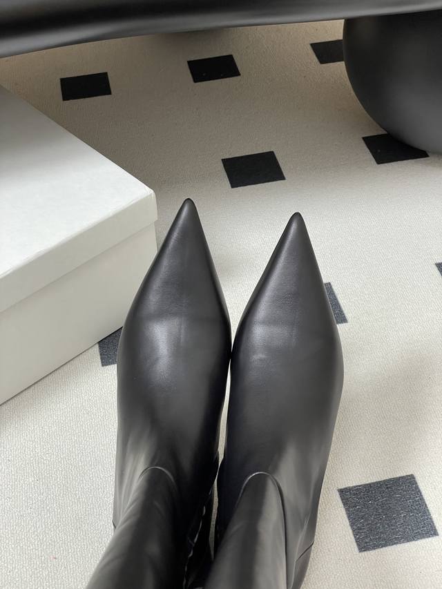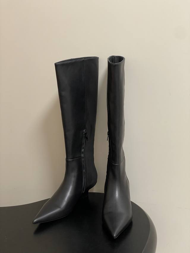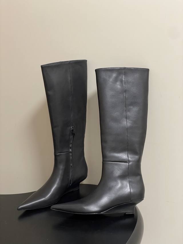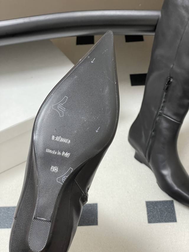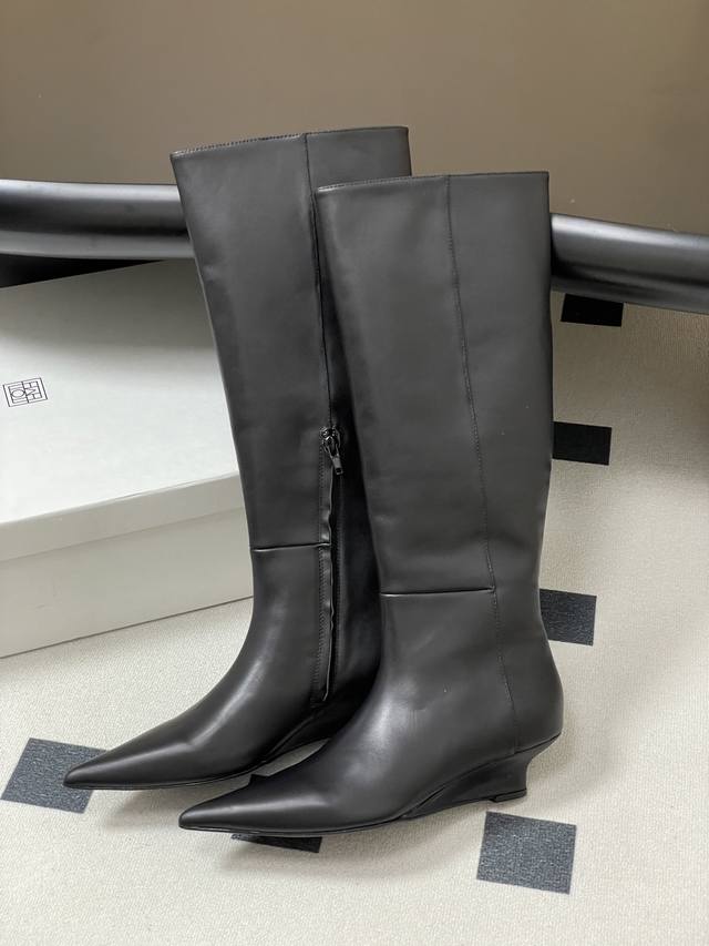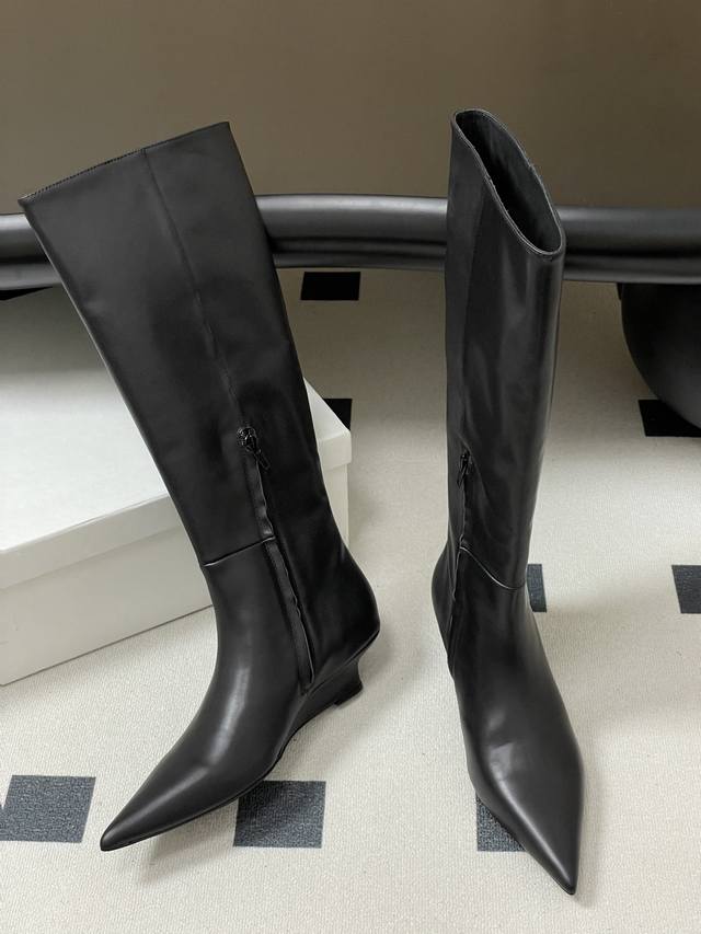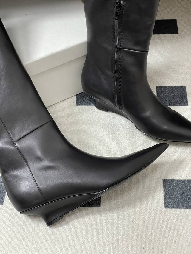 Toteme 25Ss早秋新款复古坡跟尖头侧拉链长靴骑士靴 时髦极小尖头搭配坡跟内增高的设计 潇洒百搭而且脚感很稳。鞋型纤细又时髦,微微的堆积感超显腿细 女神的