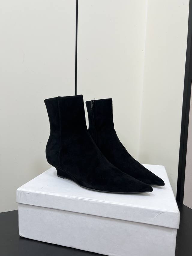 / Toteme2025 |新品秀款尖头坡跟短靴 这一期真美一点也不无聊 利落的裁剪尖头鞋 放大了女性的优雅与性感 关照大多数人将极简与功能性贯穿生活与服饰 迷人的