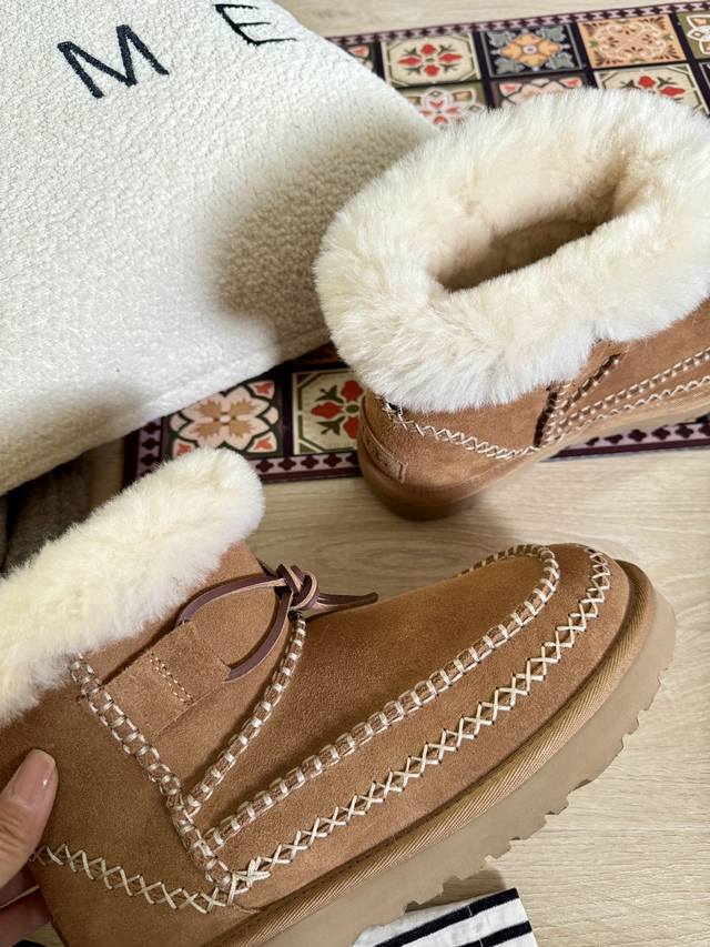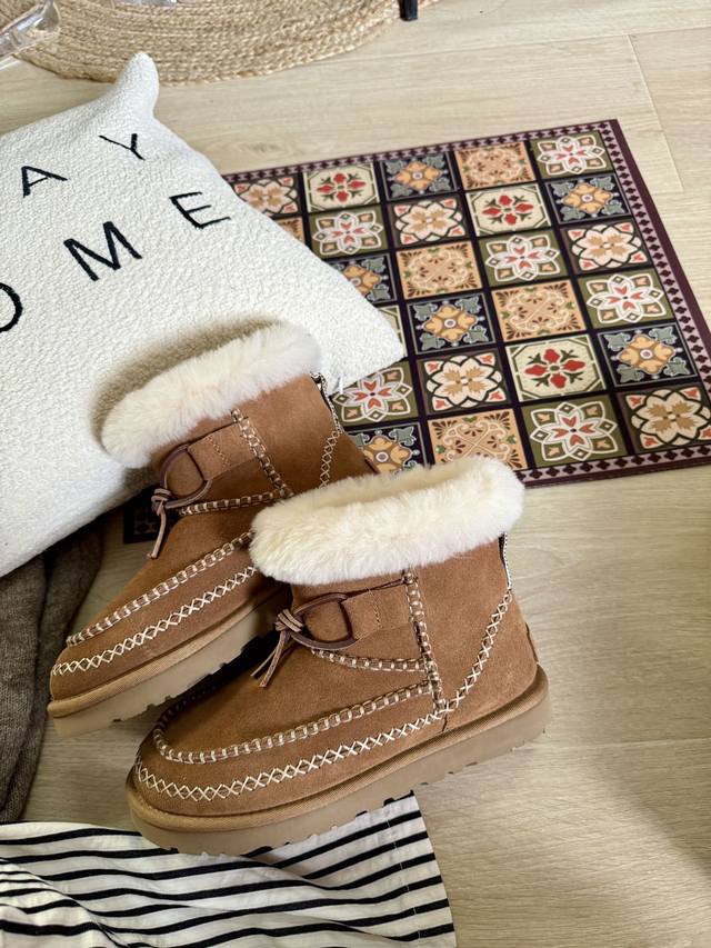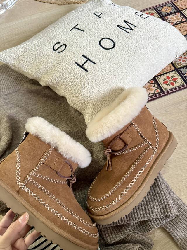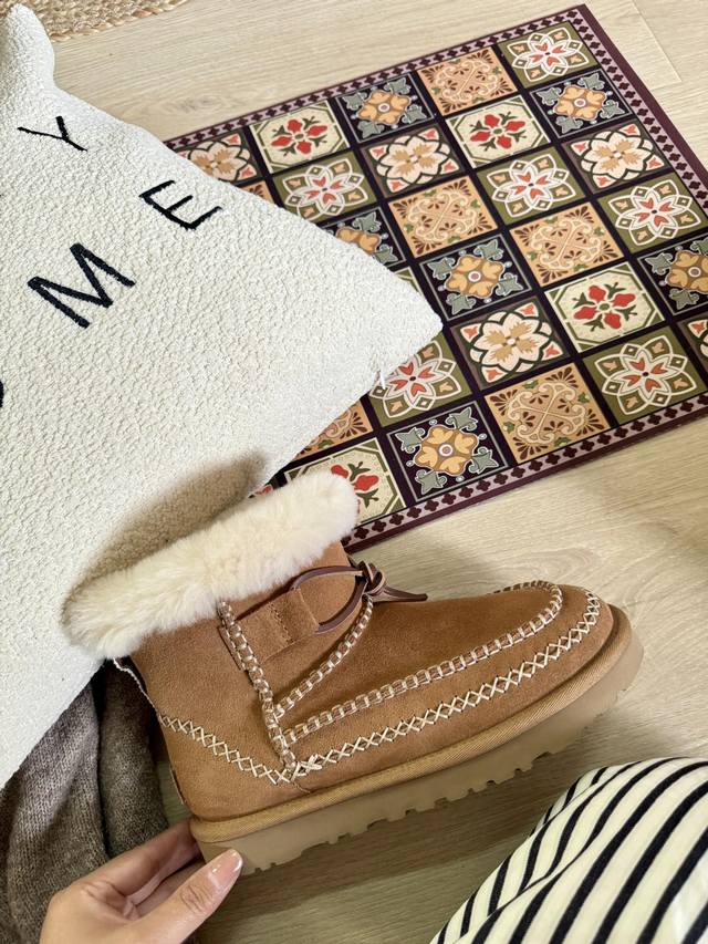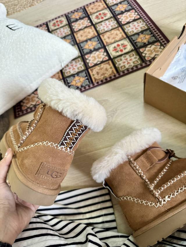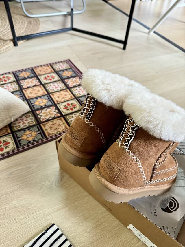 Ug*新款阿尔派经典迷你短靴 DDD 鞋面上的材质质感超棒,纹路清晰细腻,无论是视觉还是触觉都给人一种高级感。 DDD 独特的配色,既经典又时尚,让你在人群中轻松脱颖而出。 DDD 再看鞋口处,圆润的弧度,穿着舒适不磨脚,还能很好地修饰脚踝线条。 DDD 鞋内的羊毛内衬,那叫一个柔软舒适,保暖性更是一流,让你的双脚仿佛被云朵包裹。 DDD 还有鞋底的纹路,防滑又耐磨,无论是行走在平坦的街道还是稍有湿滑的地面,都能给你稳稳的安全感。 DDD 细节之处见真章,这个秋冬就靠它来点亮我的时尚造型啦 DDD 颜色: