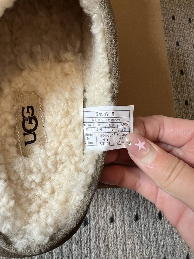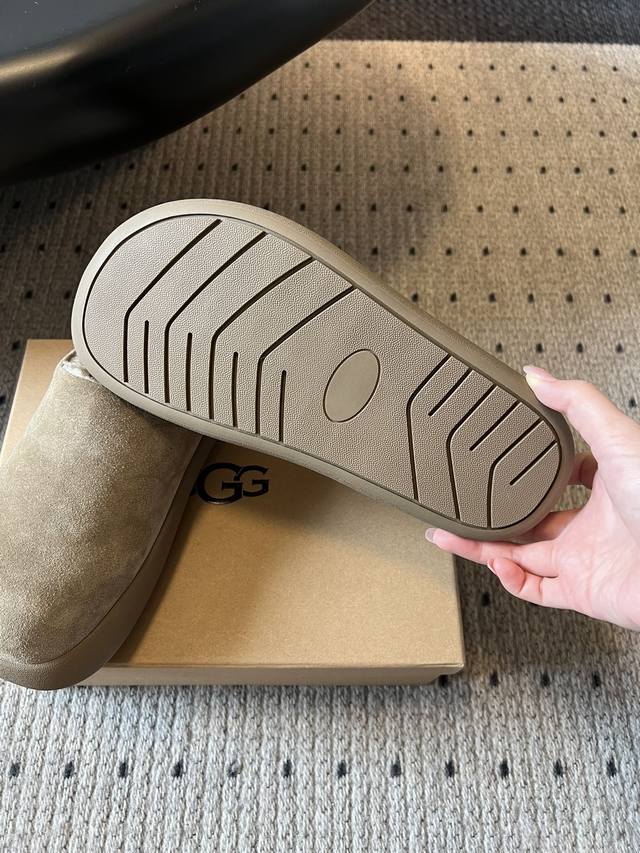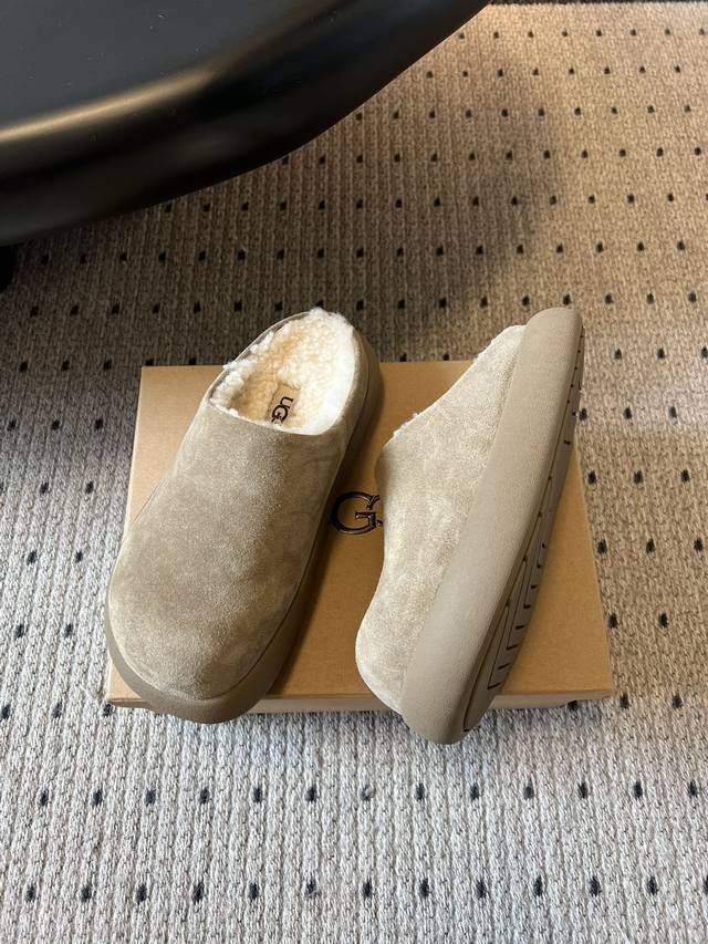 Ug*秋冬新款圆头加绒穆勒拖鞋 DDD 鞋面采用反绒皮材质,触感柔软且质感高级;鞋内填充厚实羊毛内衬,紧密锁温,能在秋冬季节提供充足的保暖效果,贴合脚部肌肤时温暖舒适。 DDD 属于穆勒拖款式,无后跟的开放式设计,穿脱极其便捷;鞋型圆润饱满,视觉上简约大气,兼具居家与轻外出的实用性。提供多组低饱和度大地色系,色调柔和百搭,易与各类秋冬服饰搭配,满足不同风格的穿搭需求。 DDD 鞋面:高丝光牛绒 DDD 内里:隆丰A级皮毛一体 DDD 大底:Eva发泡大底 DDD 增高:4.5Cm DDD Size:35-