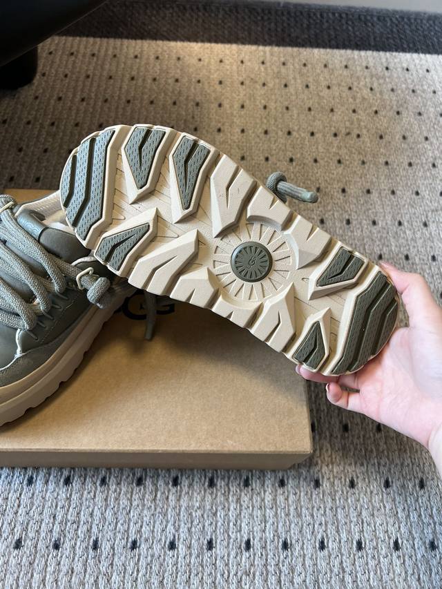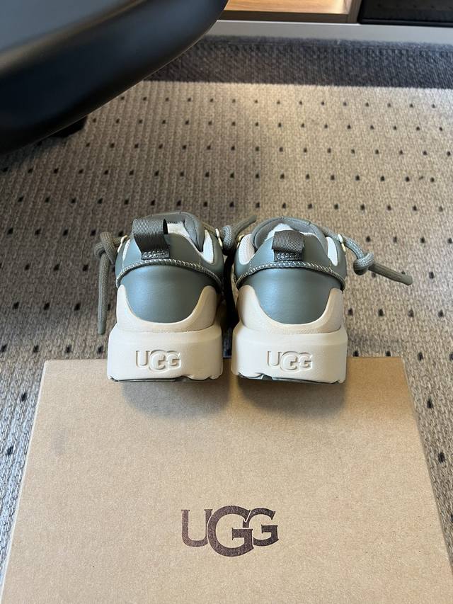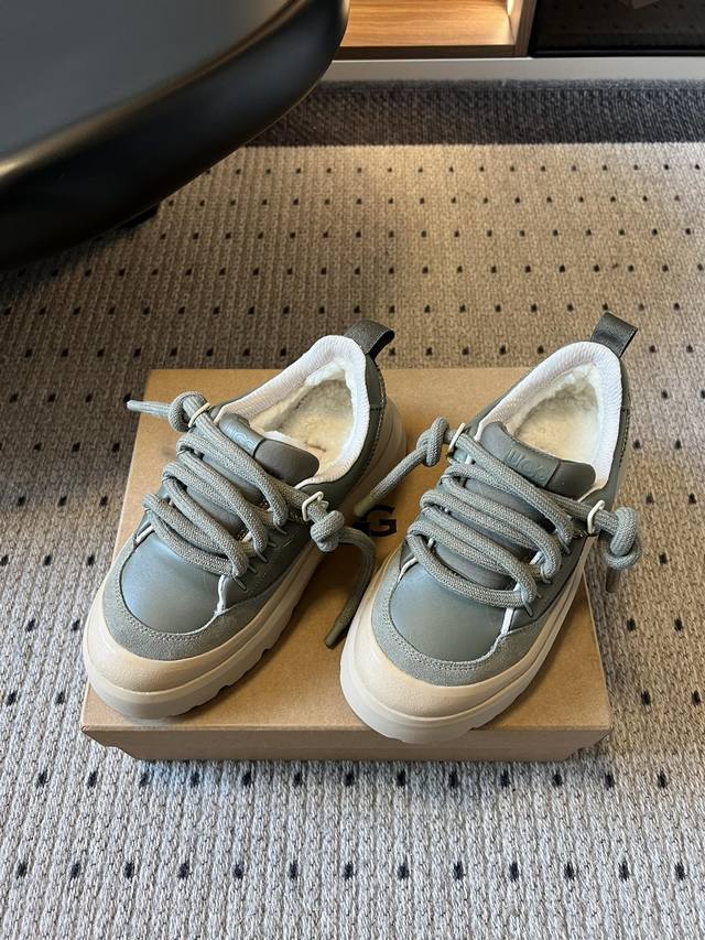 Ug*秋季男女同款潮流轻便厚底系带运动休闲鞋 鞋面采用皮革和反绒皮拼接设计,质感细腻且耐穿;内里填充毛绒材质,延续Ugg标志性的保暖特性,适合秋冬寒冷天气。 选