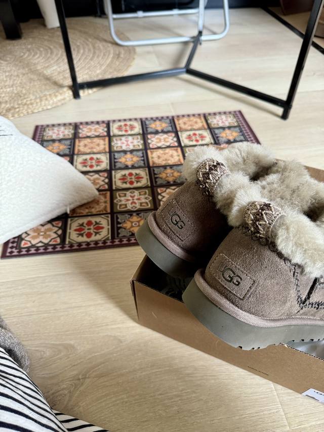 Ug*阿尔派浅口靴 圈口毛毛光腿穿的时候真的很舒服, 鞋面上的白色