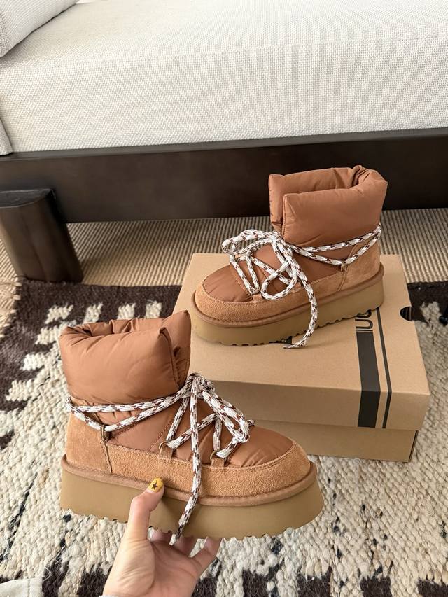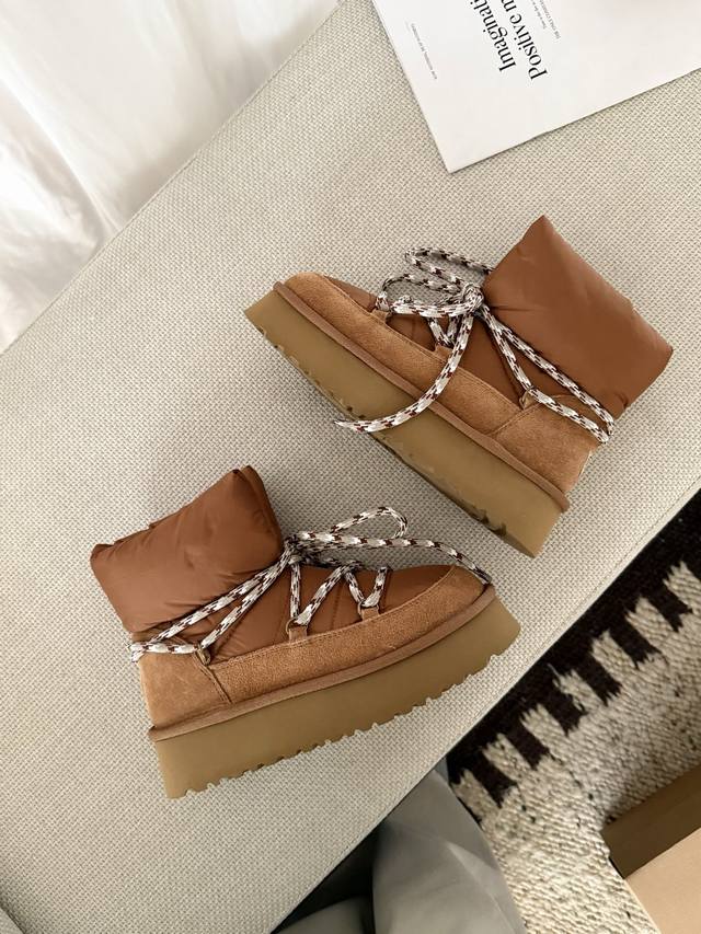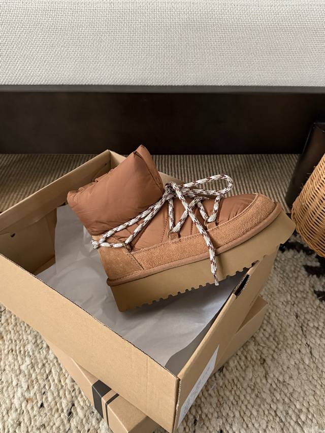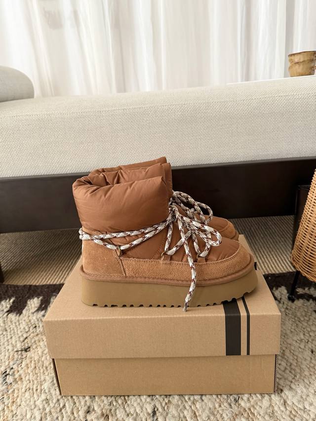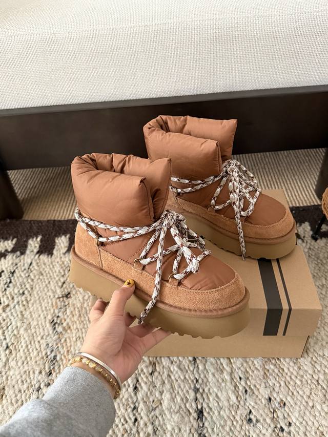 Ug . 韩版羽绒系带面包靴 韩里韩气Ins博主同款 期待了一个月之久终于出啦 笨笨的面包系带造型 呆萌小可爱 羽绒布与内里皮毛一体保暖双加持 Size:35