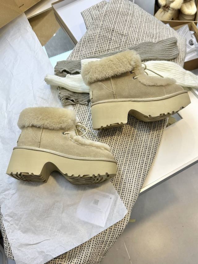 / Ugg上新+U家埃斯米系带短靴,忍不住分享的秋冬限定穿搭 真的太懂秋冬了 新推出的懒人毛毛鞋 毛茸茸的慵懒中带点随性 这双埃斯米系带短靴 7厘米的厚底还有种不经