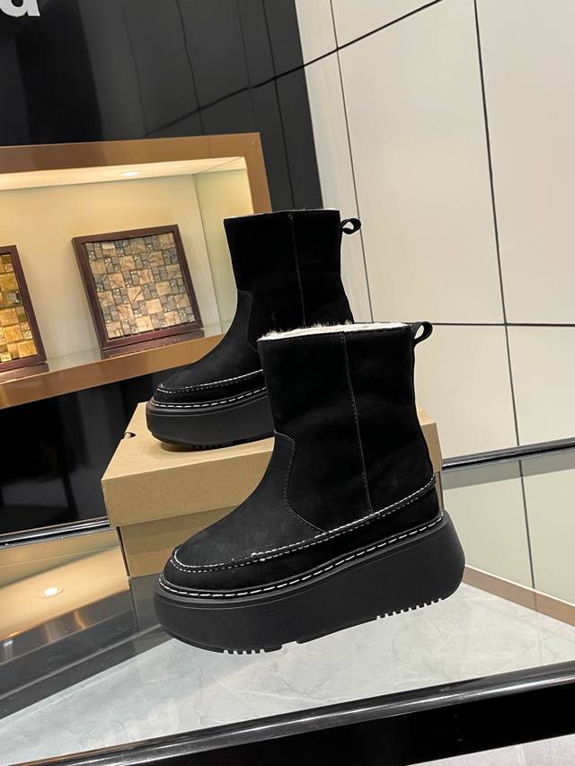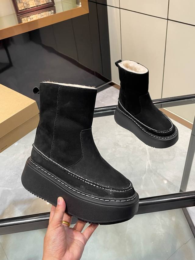 Ugg专柜新品,款式简洁大气 极简之美。 面料:进口防水磨砂牛皮 内里垫脚:澳洲进口百分之百纯羊毛。 大底:防滑橡胶发泡材质。轻便防滑 工艺:手工缝线点缀 颜色