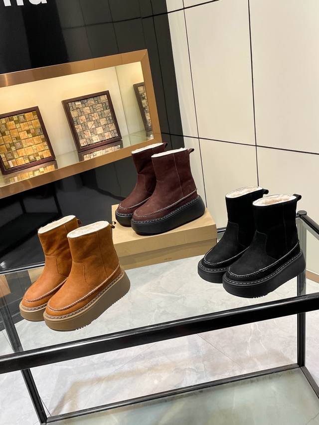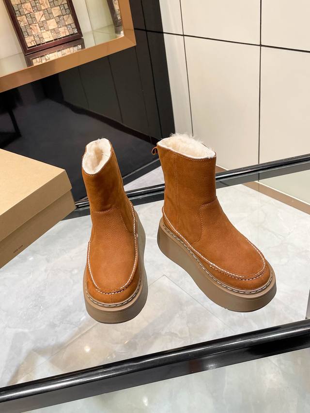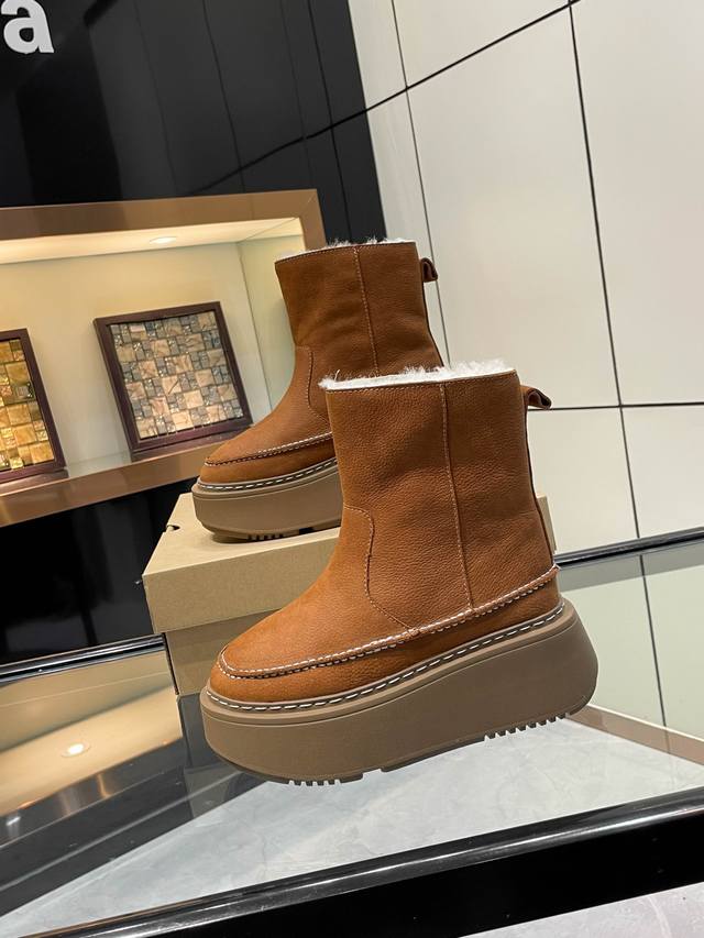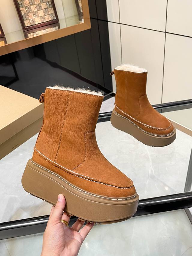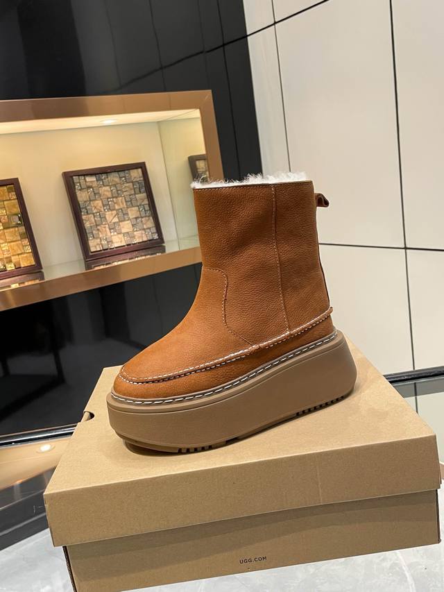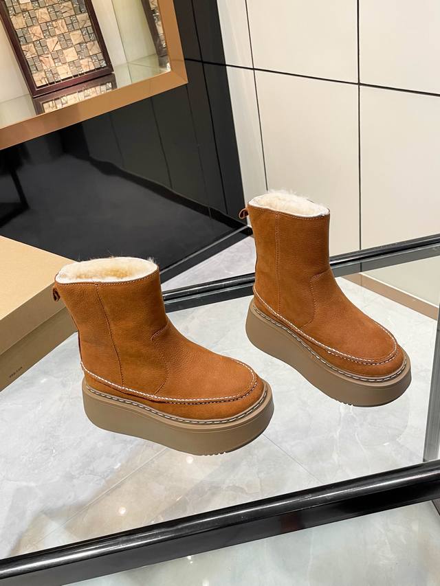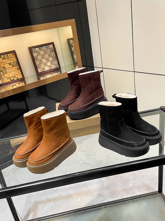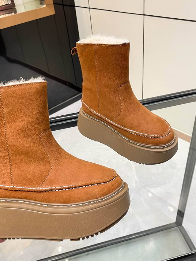 Ugg专柜新品,款式简洁大气 极简之美。 面料:进口防水磨砂牛皮 内里垫脚:澳洲进口百分之百纯羊毛。 大底:防滑橡胶发泡材质。轻便防滑 工艺:手工缝线点缀 颜色
