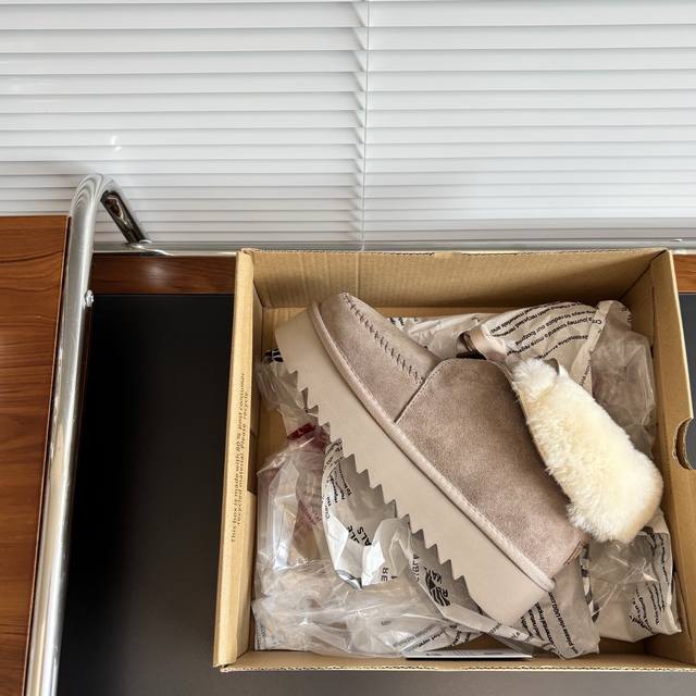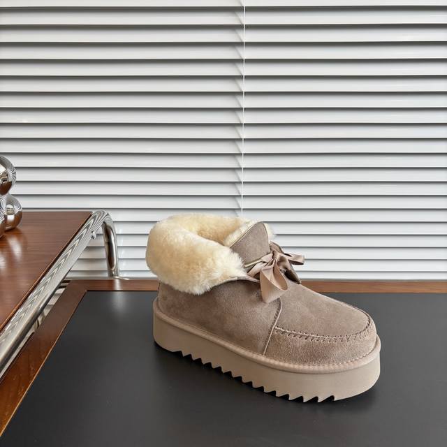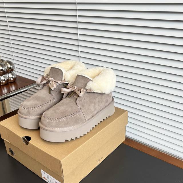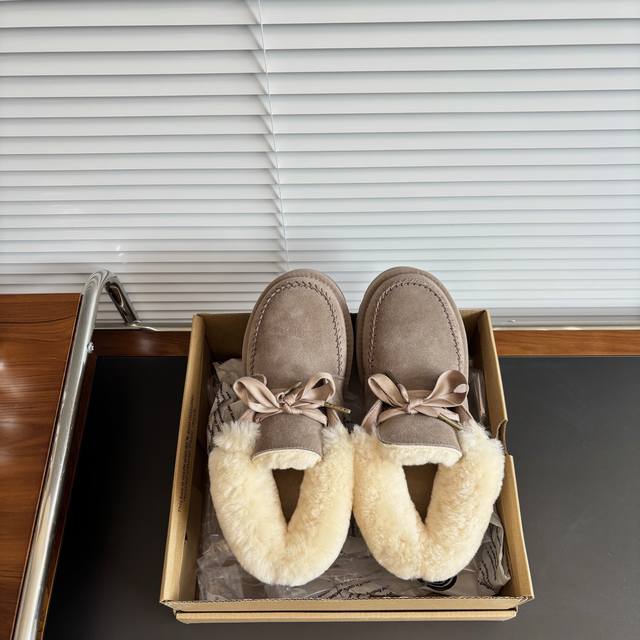 Ugg凯琳厚底便鞋也太软萌了叭 厚底设计悄咪咪显高5厘米 丝带装饰温柔知性 可翻折羊毛鞋领 秋冬必备穿搭 Size: 35-40 厂价P:
