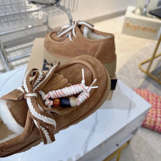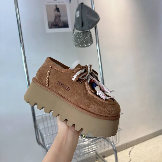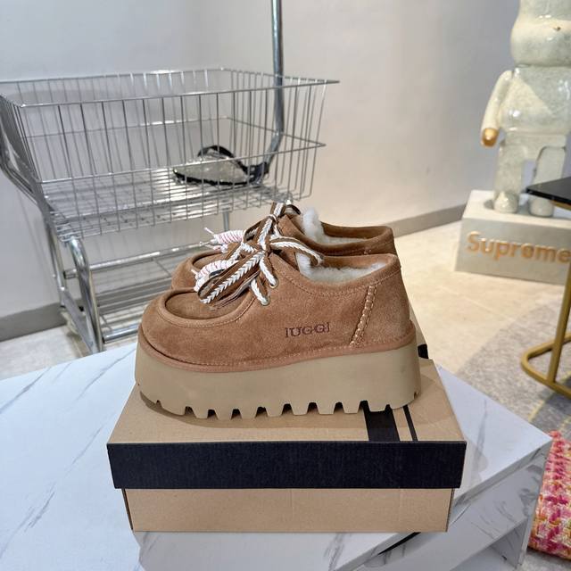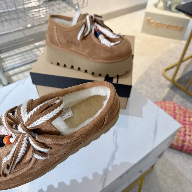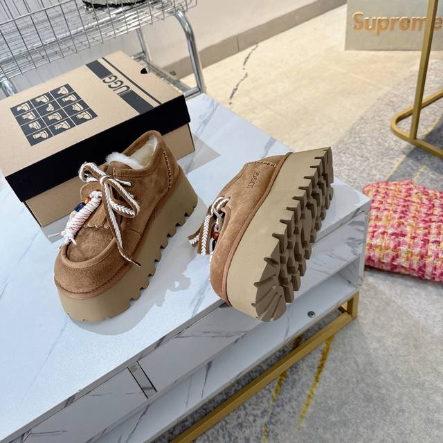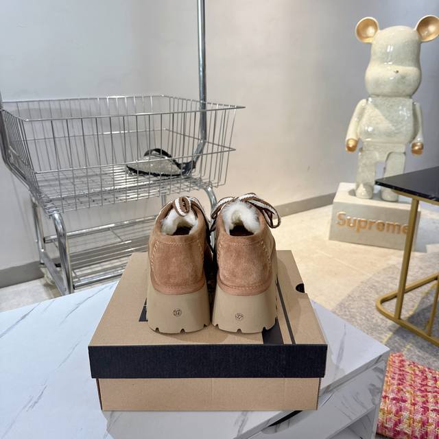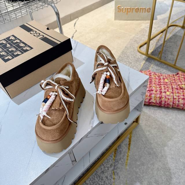 Ugg厚底系带雪地靴 美媚必选,秋冬长装短装好配衣服,超显身材秋冬女性必备.保暖神器 源自澳洲,百搭新款,Mra级摩卡星羊毛,顶级品质.反毛牛绒面料,与羊毛里的