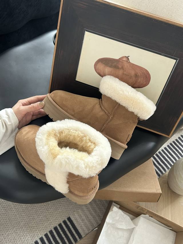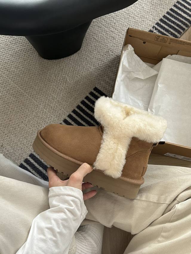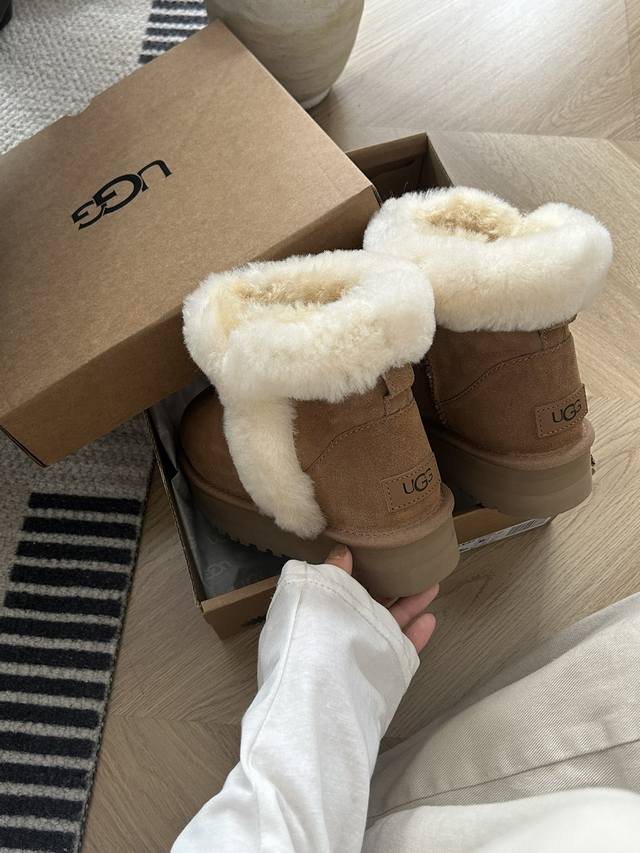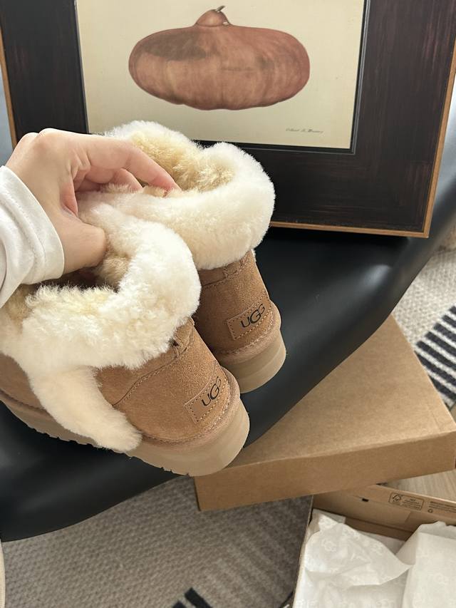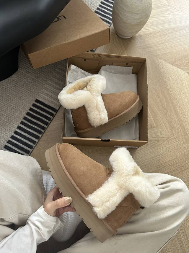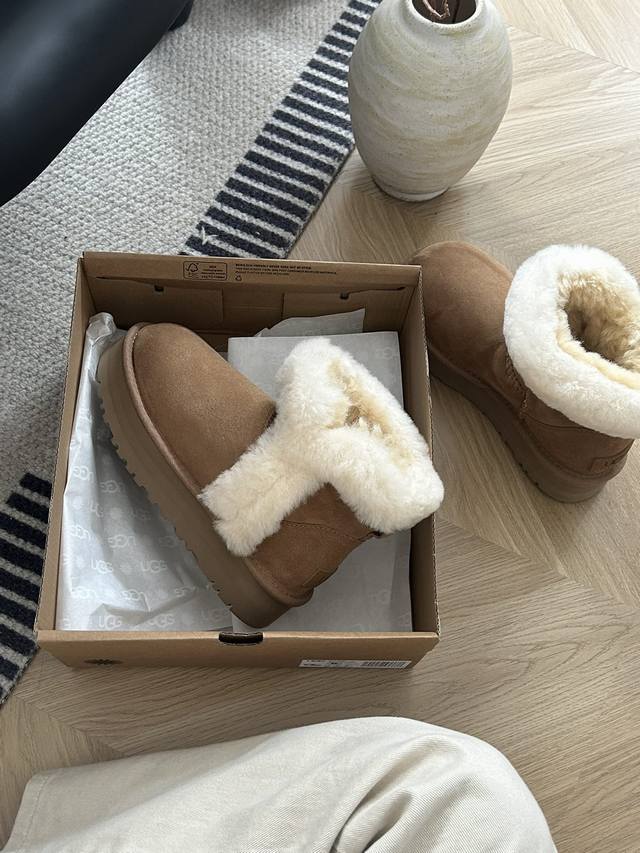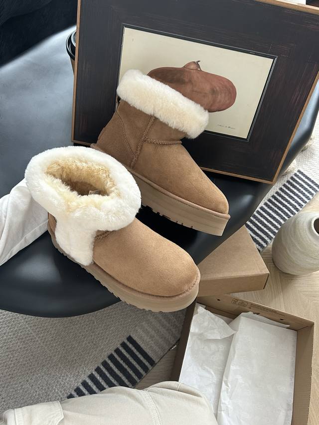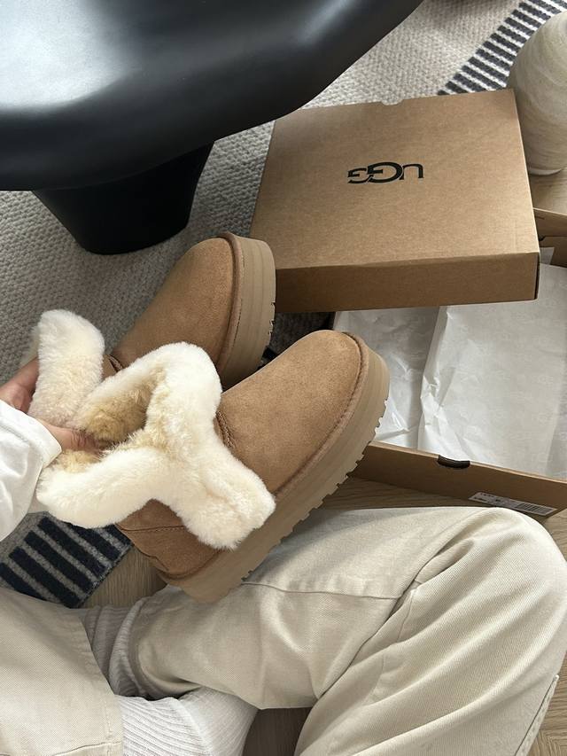 / Ugg.厚底羊驼毛边小可爱雪地靴砖柜同款 1:1开模定制 内里羊皮毛一体 鞋底采用轻翼科技橡胶大底 轻巧又柔软 溢毛边边温暖又可爱 美到我心巴里了 颜色:栗色,