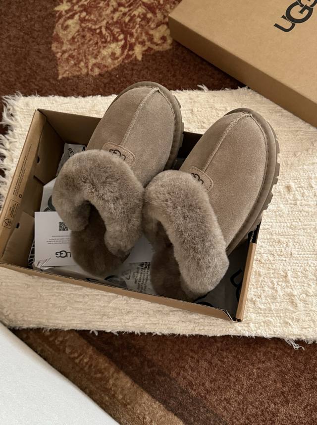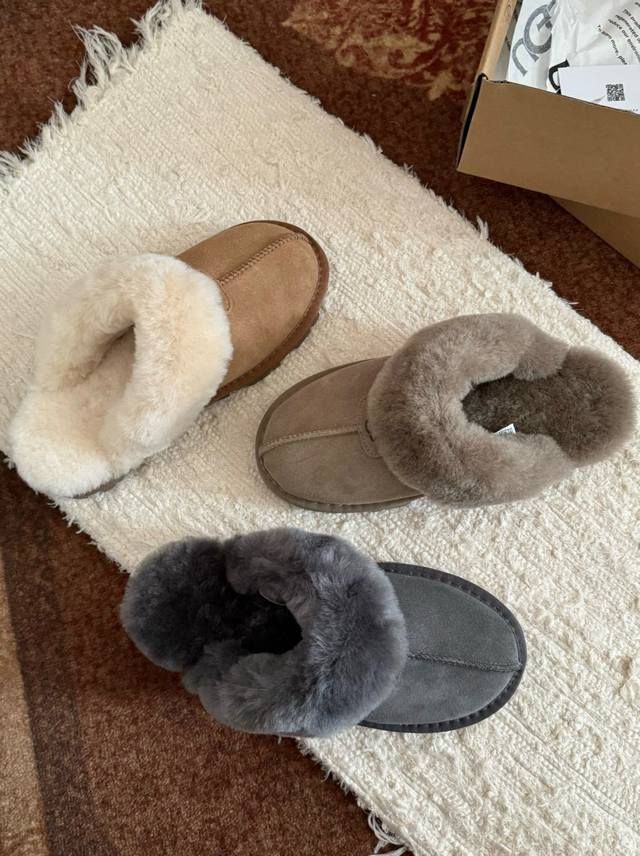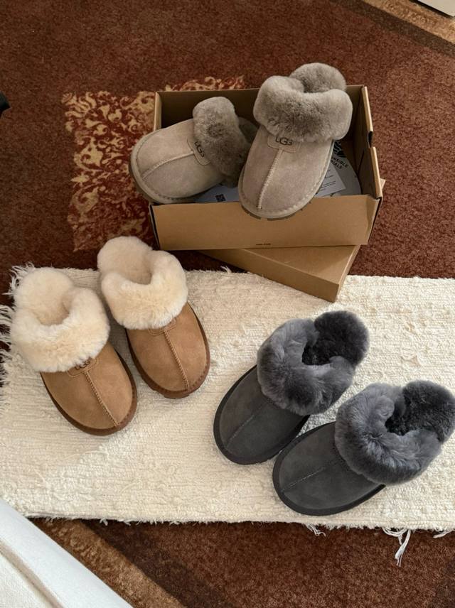 Ugg四季平底休闲时尚舒适百搭星拖 #百搭拖鞋 #男款 #羊皮毛拖 三色,灰色,栗色,羚羊色 Size: 40-45