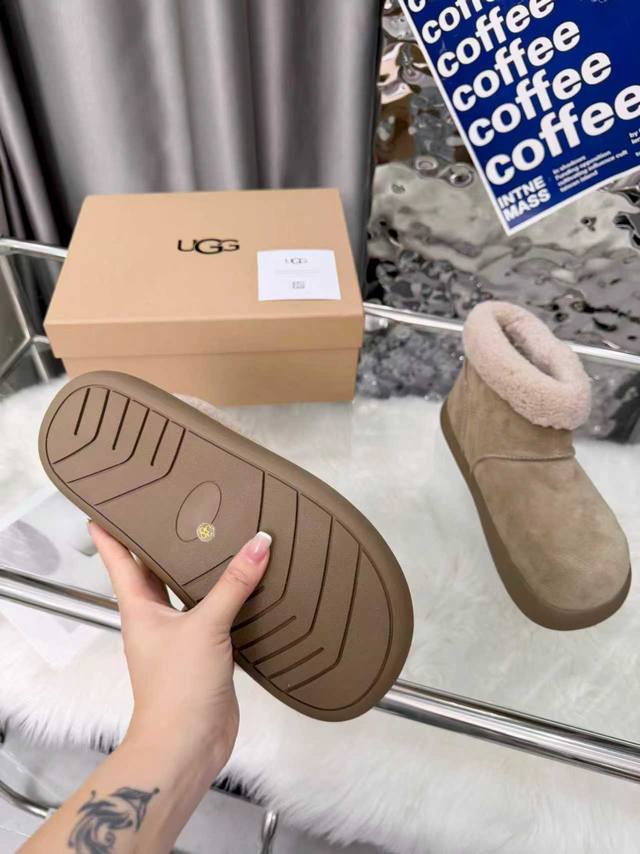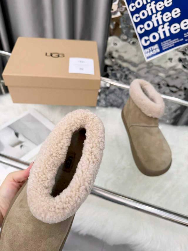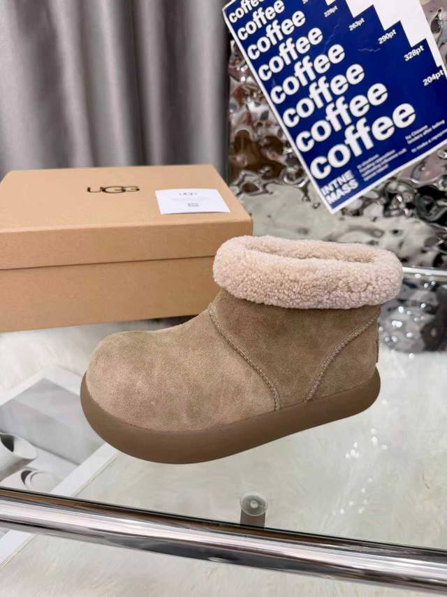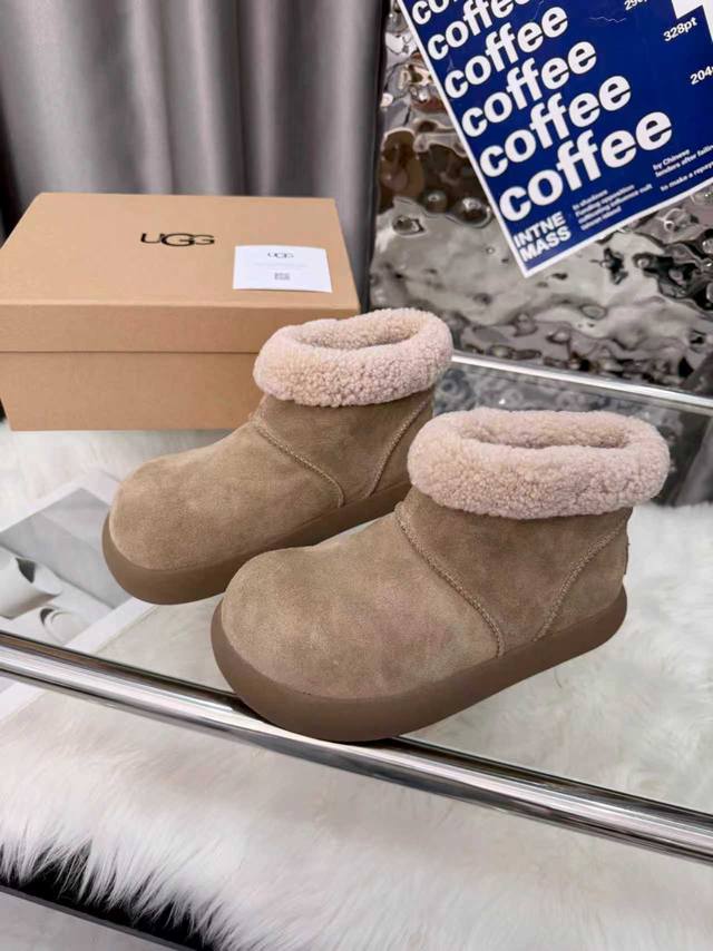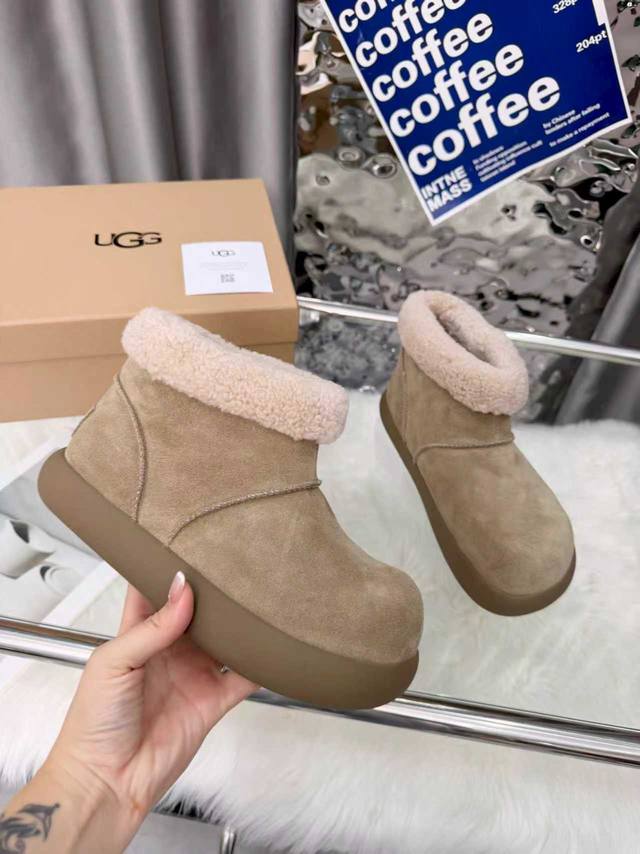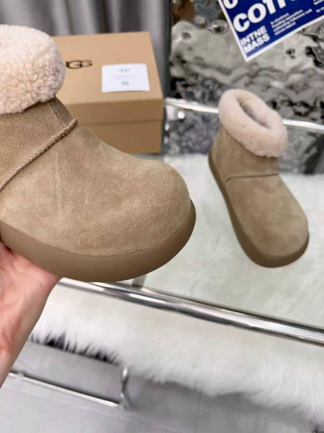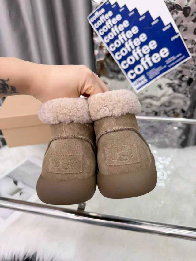 Ugg圆头包头毛绒短筒小土豆雪地靴 DDD 圆头“土豆形”鞋身+翻边毛绒鞋口,软萌可爱;配色是低饱和大地色系,自带松弛感,搭大衣、阔腿裤都很适配。 DDD 一脚蹬设计,穿脱方便;鞋底是Eva+橡胶复合材质,又软又轻,久站不累,走路不容易滑。鞋型偏休闲,室内外都能穿;部分款式带防泼水功能,遇小雪 水渍不容易渗进去,打理起来也相对省心。 DDD 鞋面:高丝光牛绒 DDD 内里:隆丰A级皮毛一体 DDD 大底:Eva发泡大底 DDD 增高:3Cm DDD Size :35-40码 40码定制不退换 DDD