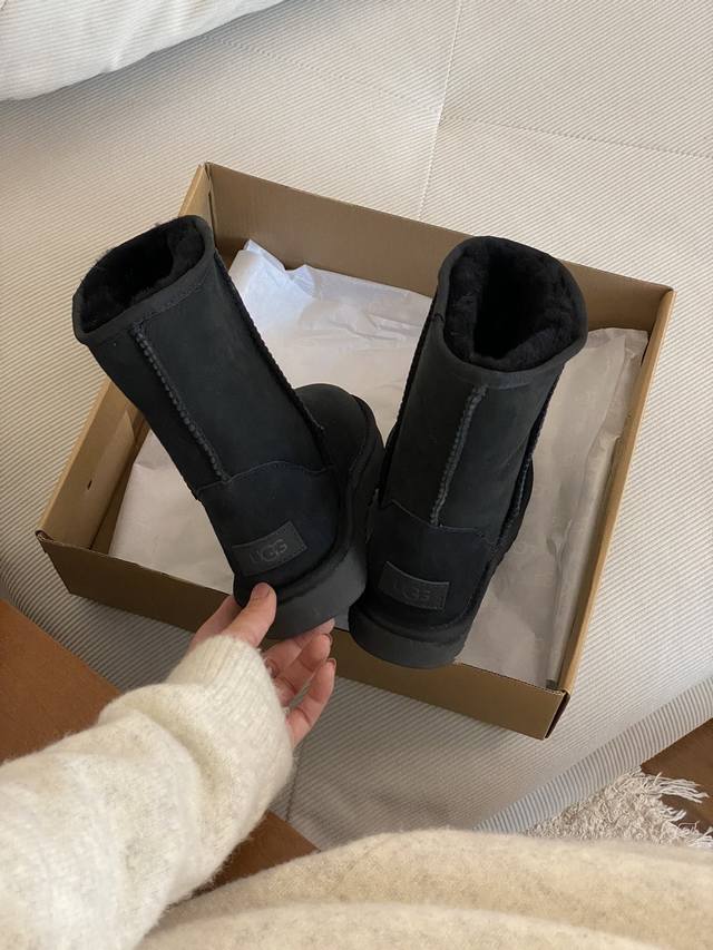 Ugg基本款中筒 羊皮毛一体雪地靴 黑色,灰色,栗色 35-40