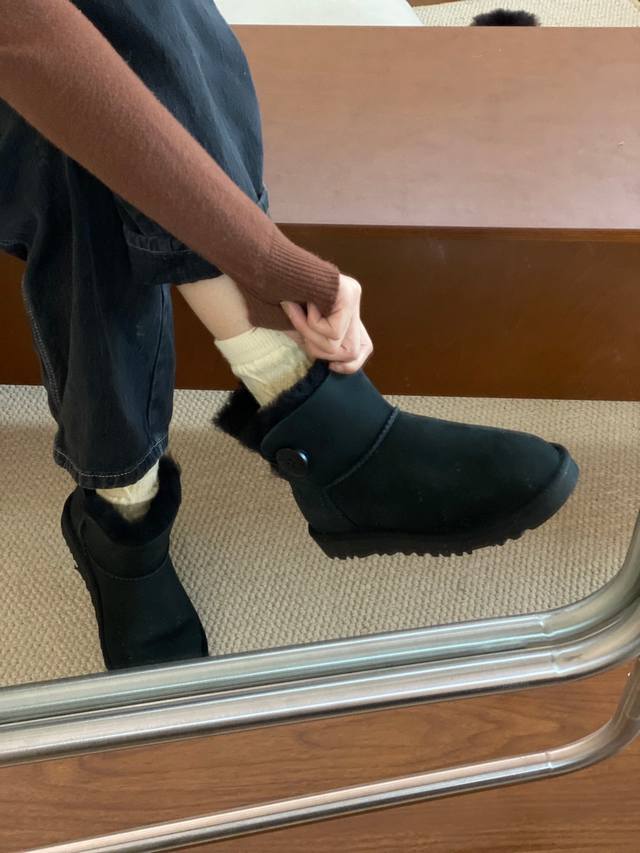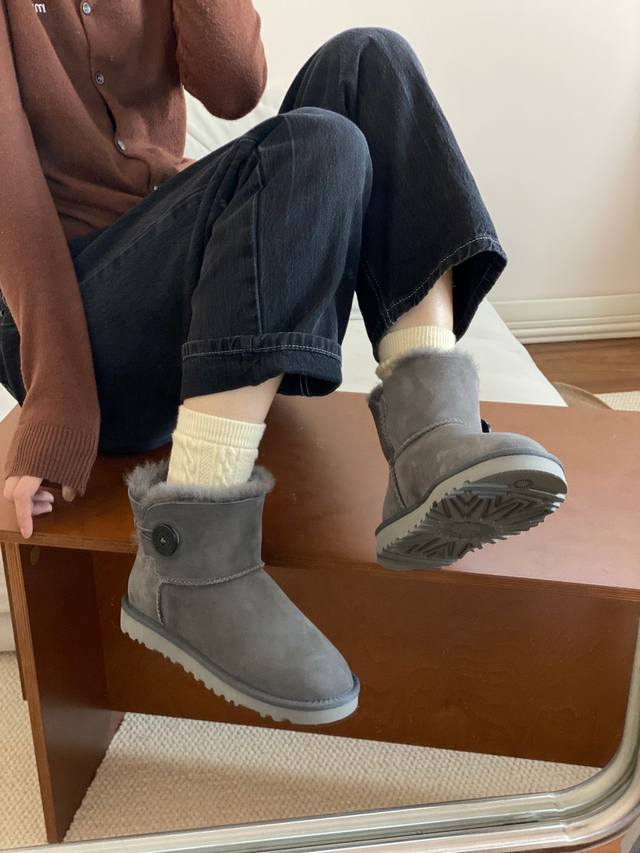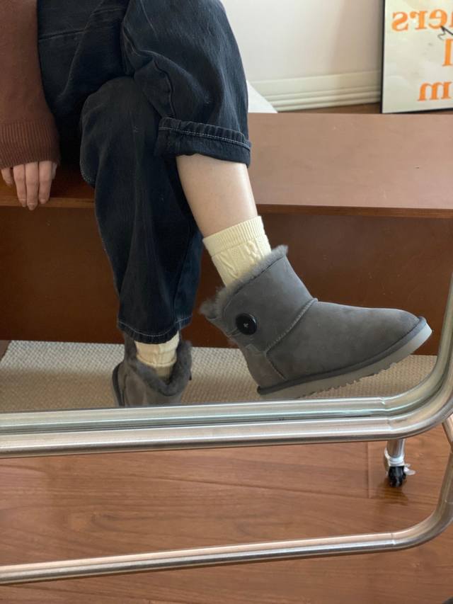 Ugg基本款短筒木扣 DDD 羊皮毛一体雪地靴 DDD 黑色,灰色,栗色 DDD 35-40 DDD