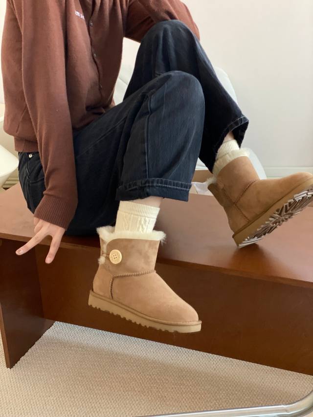 Ugg基本款短筒木扣 羊皮毛一体雪地靴 黑色,灰色,栗色 35-40