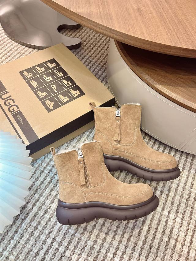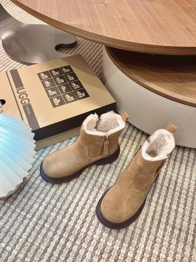 Ugg女款雪地靴韩系手工羊卷毛毛靴 DDD 美拉德色女孩的梦中情靴马丁靴~ DDD 全手工制作头层牛反绒 内里泰迪羊卷毛 DDD 搭配超有秋冬氛围感 DDD 三色 DDD Size:35-40美拉德风潮! DDD