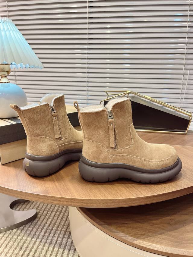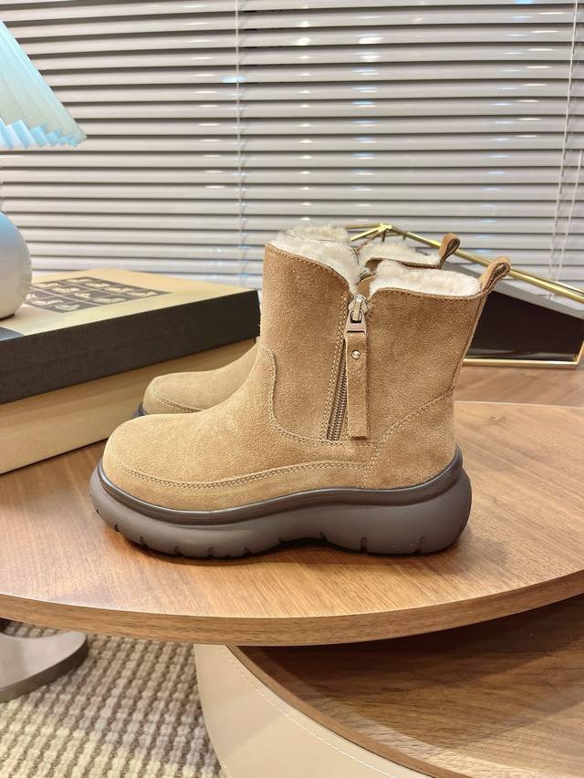 / Ugg女款雪地靴韩系手工羊卷毛毛靴 美拉德色女孩的梦中情靴马丁靴~ 全手工制作头层牛反绒 内里泰迪羊卷毛 搭配超有秋冬氛围感 三色 Size:35-40美拉德风
