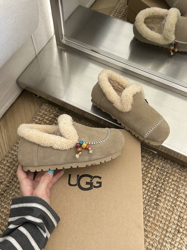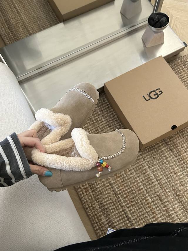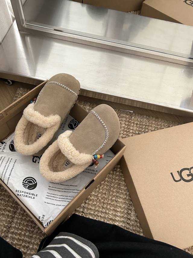 Ugg小红书穆勒串珠一脚蹬,流行马克线设计,翻毛口暖烘烘,小流苏装饰牛皮羊毛,三色:栗色 菜籽 巧色 !码数35-40码!