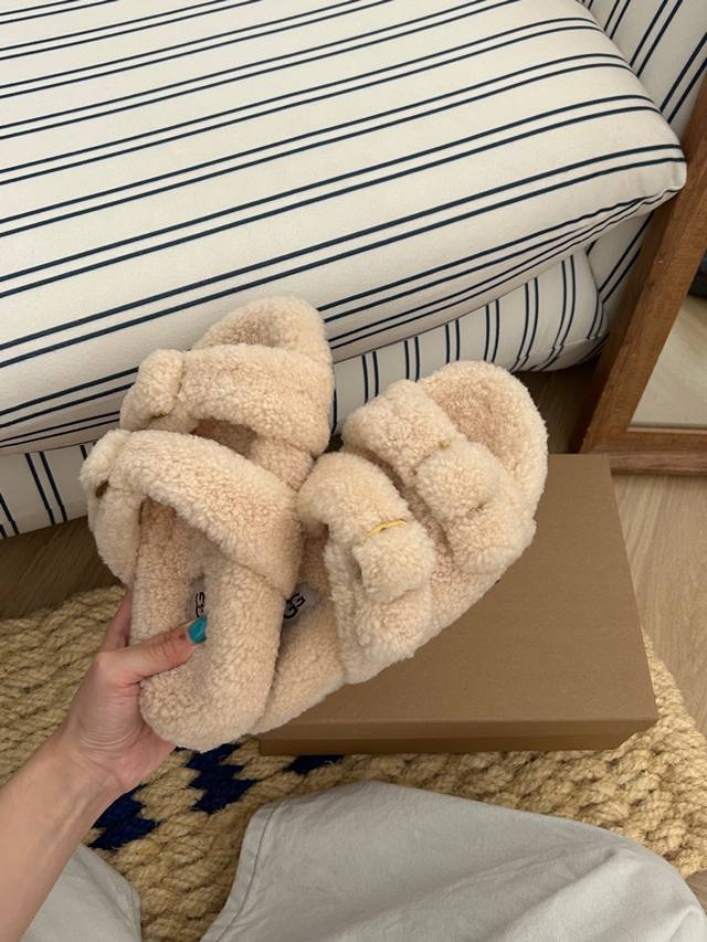 Ugg新款二舅博肯拖鞋 一款韩系穿搭的款+泰迪羊毛 三色:米色。咖色。灰色。 码数:35-40码!