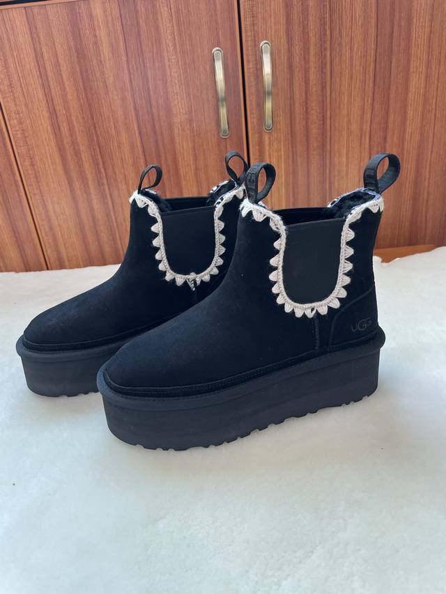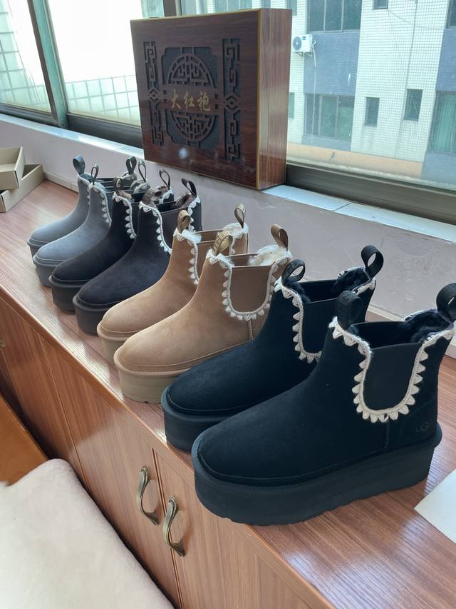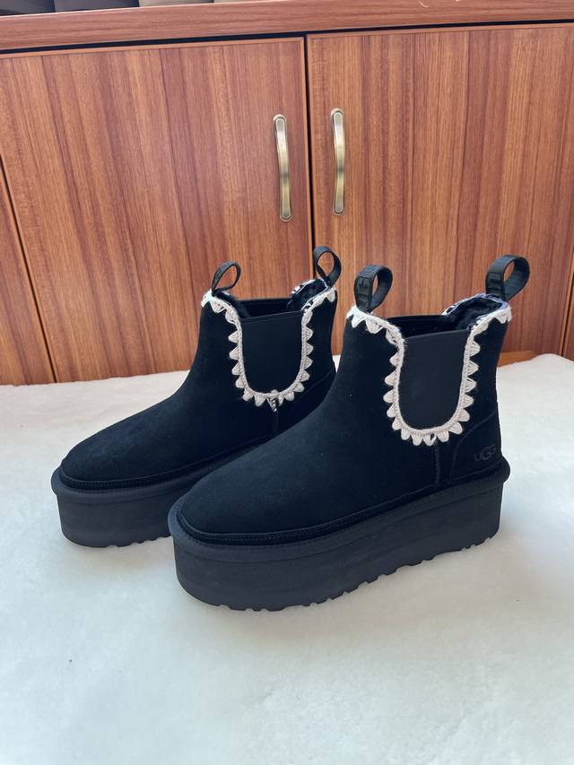 Ugg新款切尔西,官网主推款,穿线工艺, 材质:牛反绒皮羊皮毛 颜色:黑色,栗色,巧色,灰色 码数35~40,41可定制