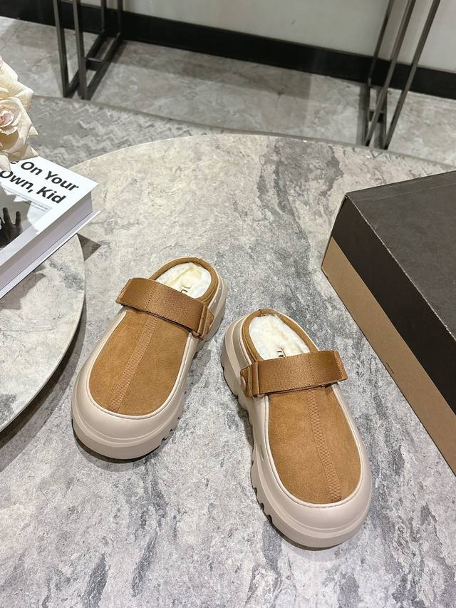 Ugg新款博肯羊毛厚底小网红拖 单鞋,小胖丁嘟嘟拖 单鞋 鞋面反绒皮 Ip发泡大底 原版纯羊毛内里,百搭时尚! Size:35-39 40定做