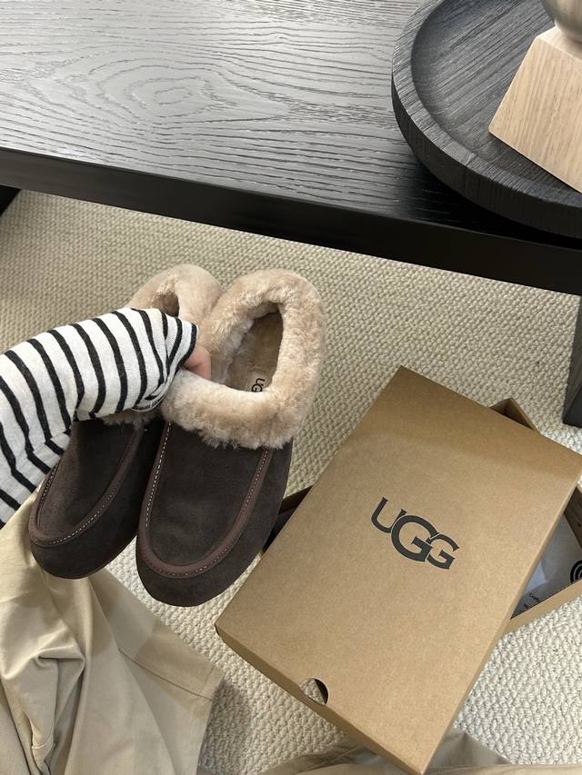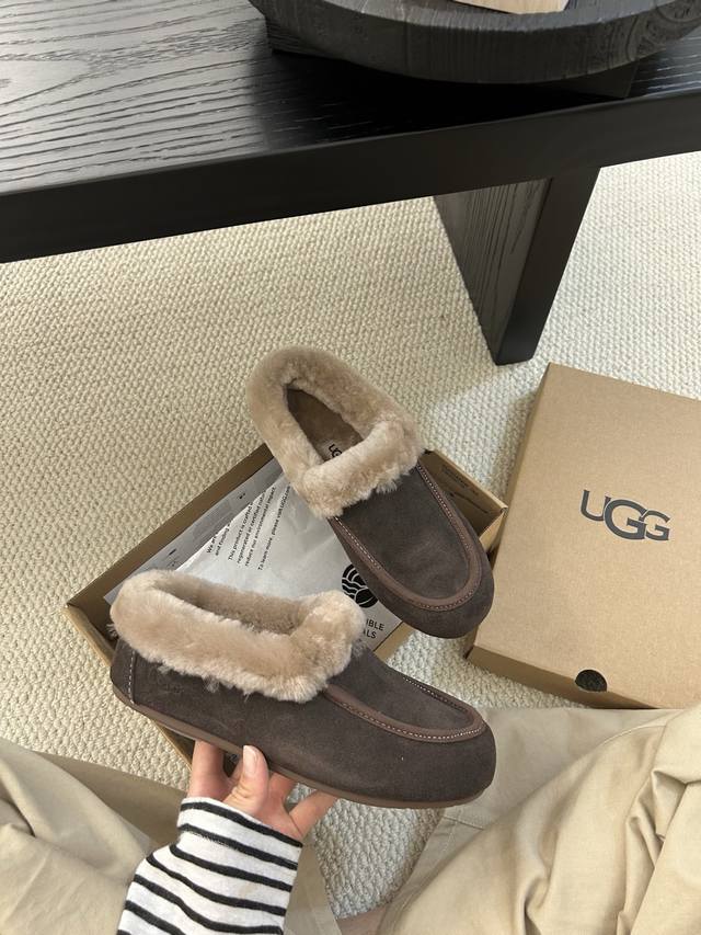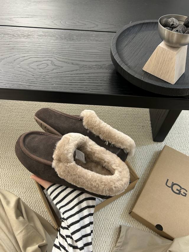 Ugg新款安思丽,一脚蹬设计,鞋口羊毛设计,保暖时尚 颜色:栗色。黑色。可可粉棕色!码数35-40 码!