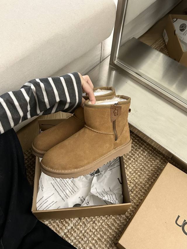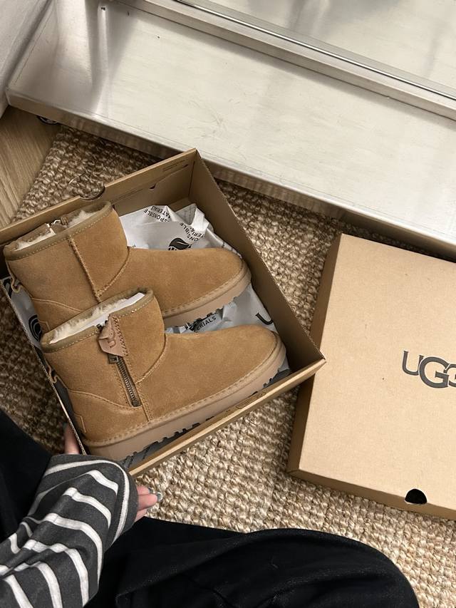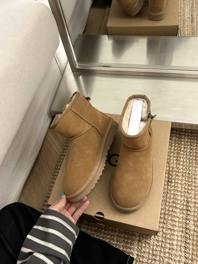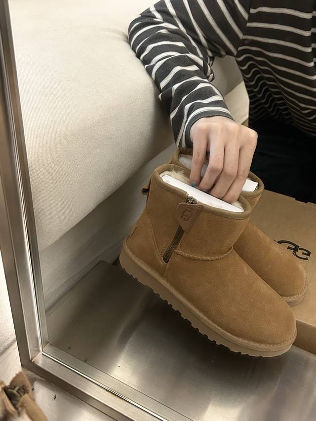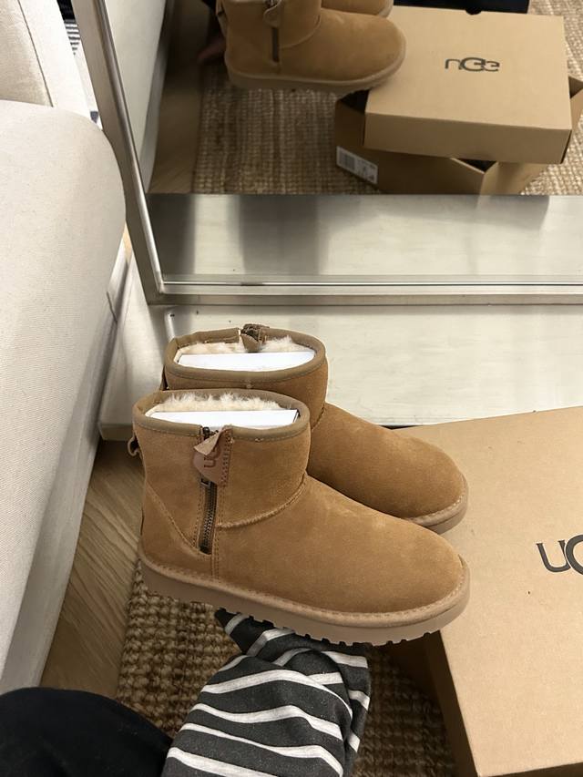 Ugg新款拉链经典薄底54款。牛皮羊毛拉链可以随时调节,懒人鞋必备一脚蹬! 颜色:胡桃色、栗色 、黑色!码数:35-40码!