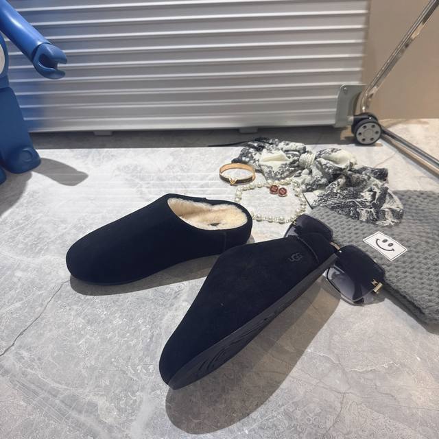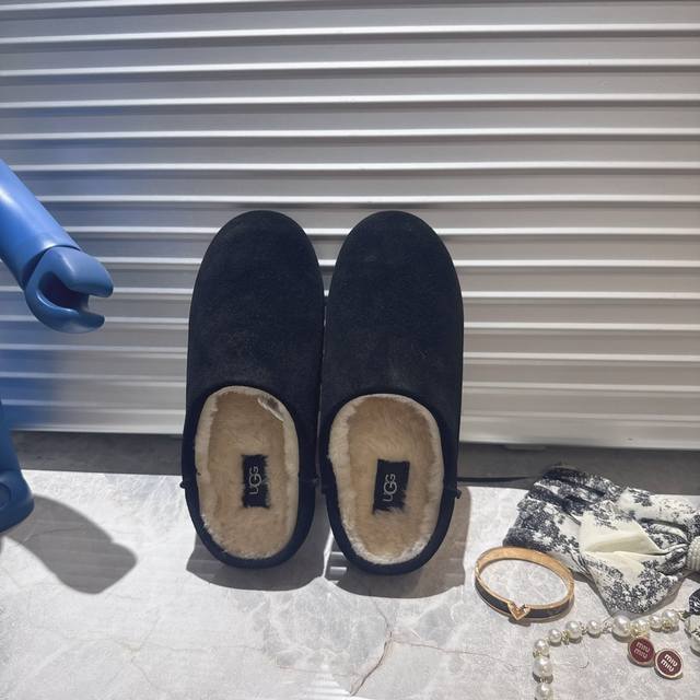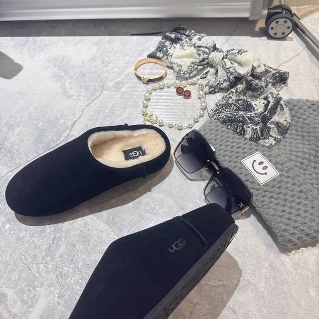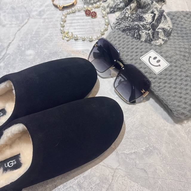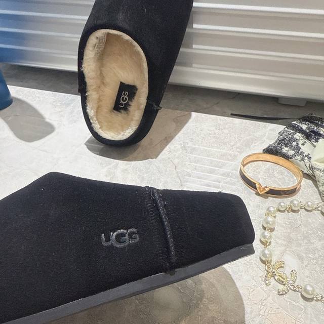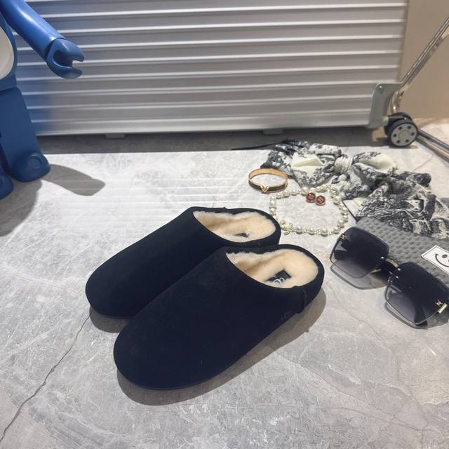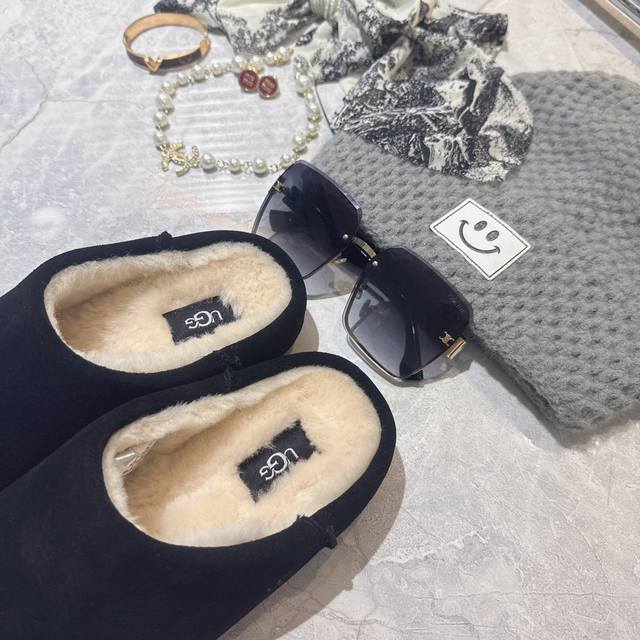 Ugg新款洛瑞娅拖鞋,牛皮翻毛,内里羊毛毛茸款,一眼就心动的毛毛拖鞋 颜色:栗色。黑色。杏色。码数35-40