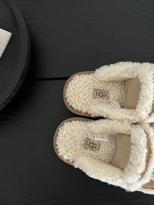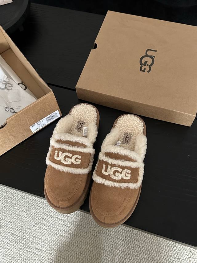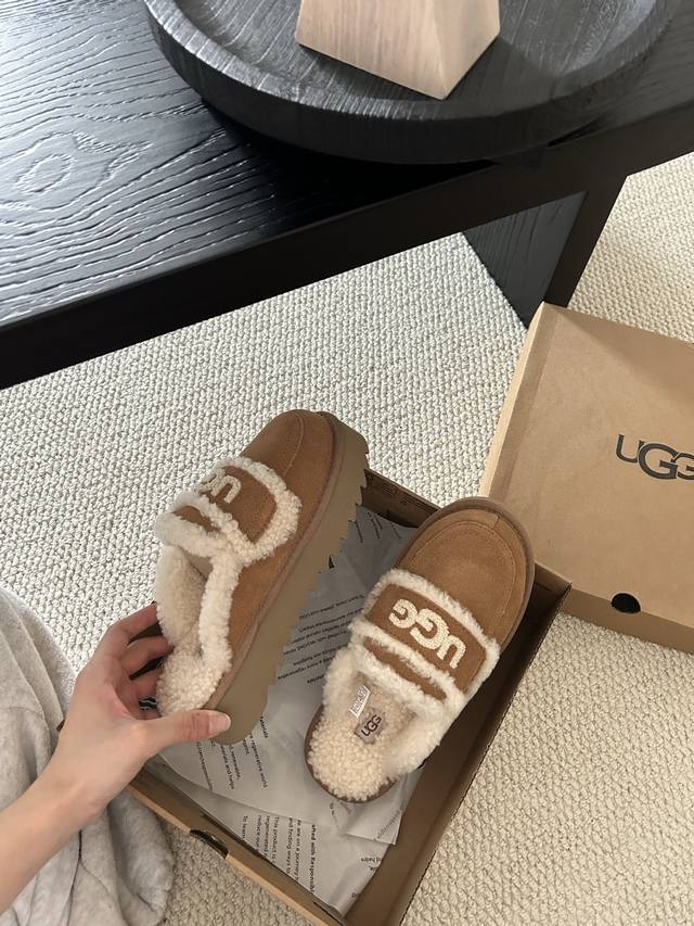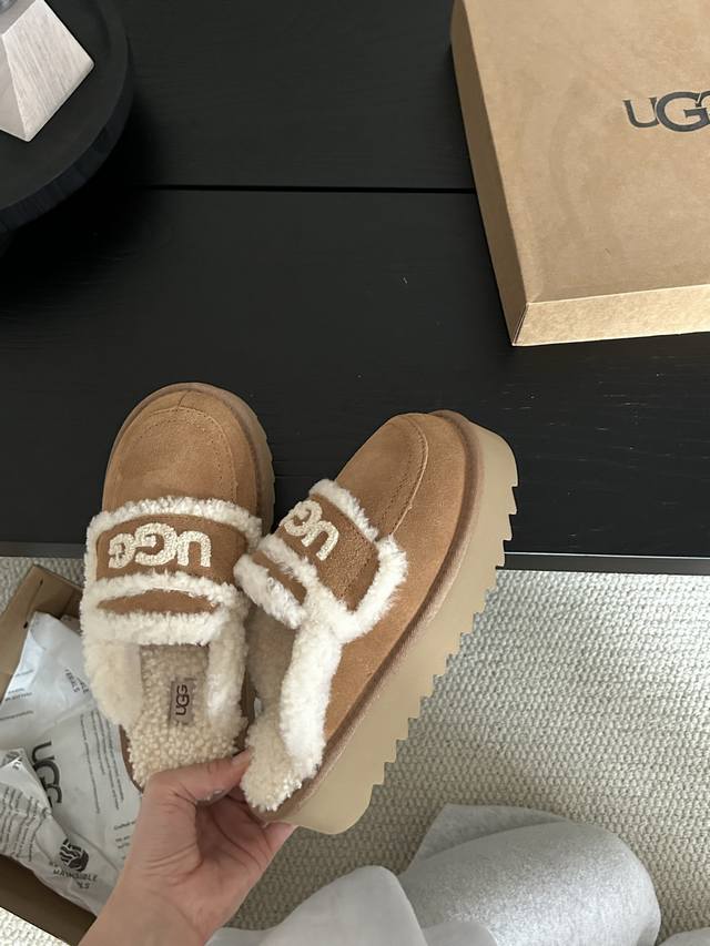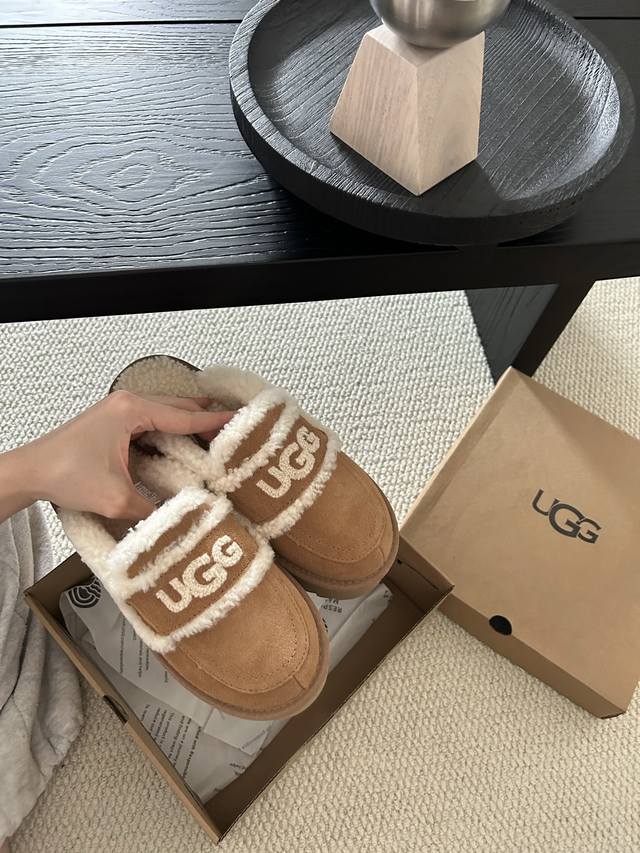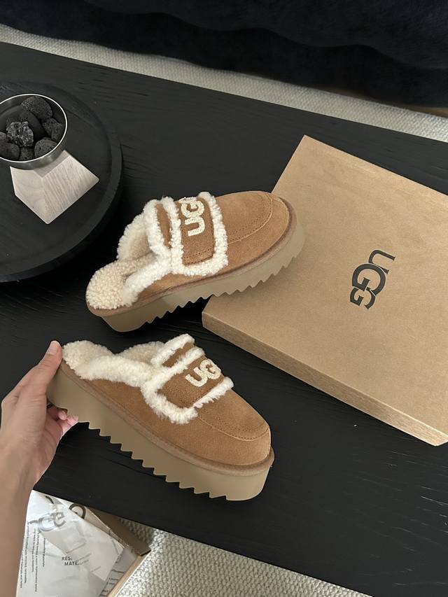 Ugg新款澳洲厚底小羊羔毛网红拖鞋,小胖丁嘟嘟拖 材质牛皮,内里真羊毛,配刺绣Ugg字样百搭时尚!一次成型大底防滑耐磨 三色:栗色。羚羊 菜紫色 码数35-40