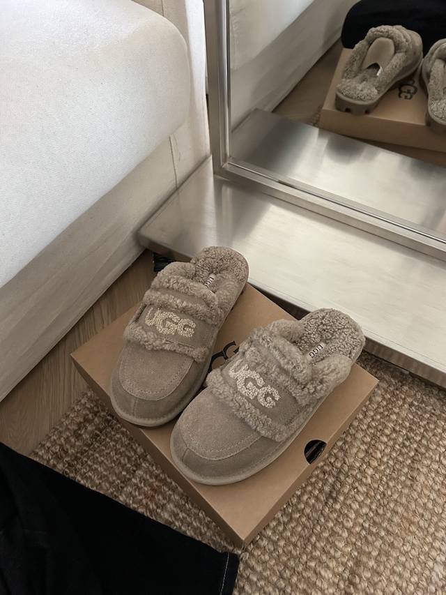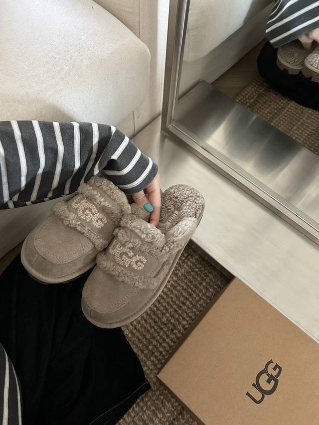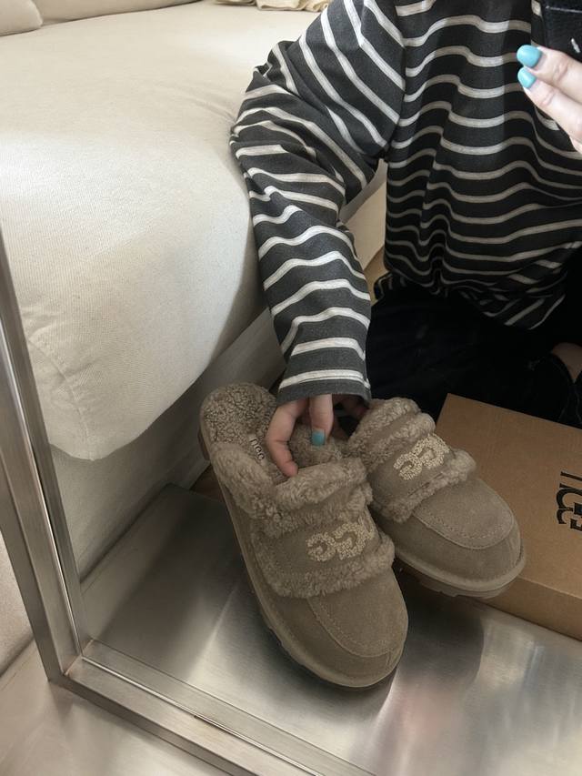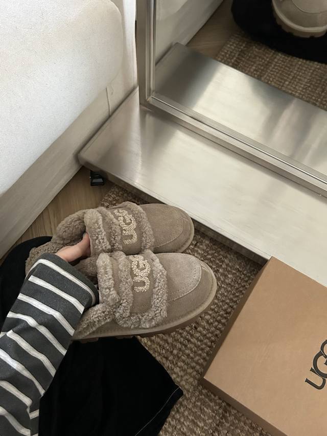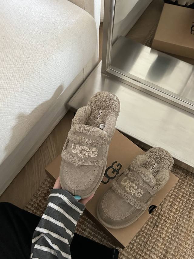 Ugg新款澳洲小羊羔毛网红拖鞋,小胖丁嘟嘟拖 材质牛皮,内里真羊毛,配刺绣Ugg字样百搭时尚! 三色:栗色。羚羊 菜紫色 巧色。码数35-40码!