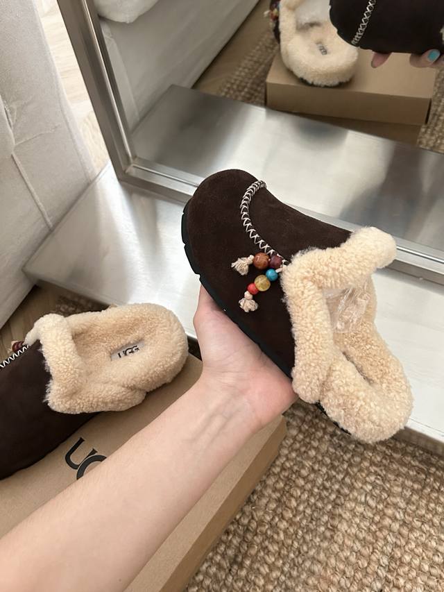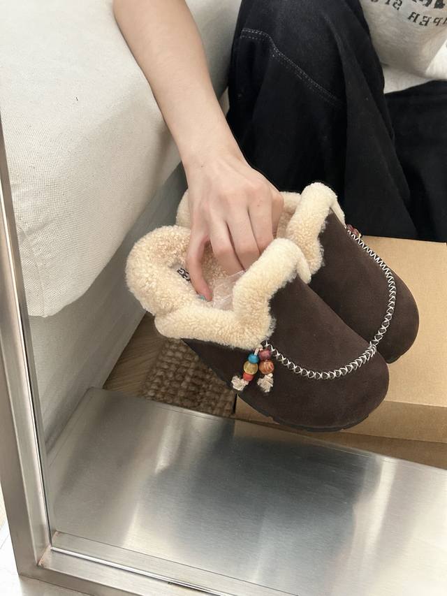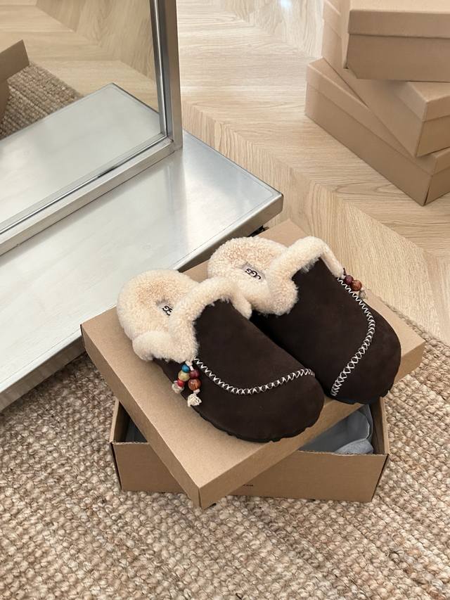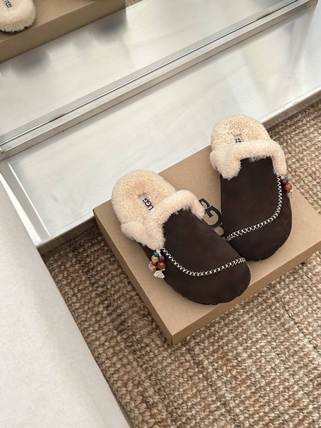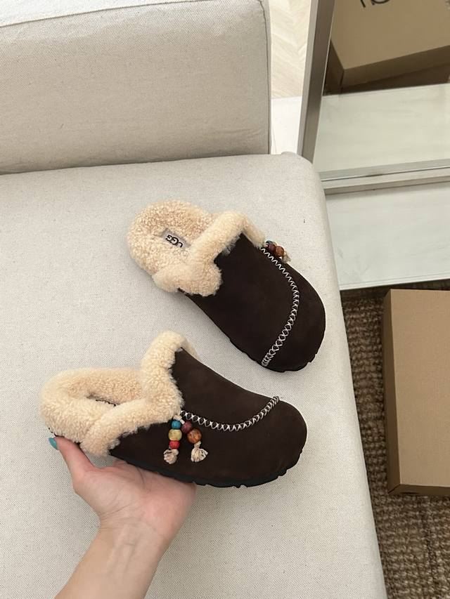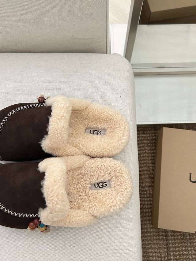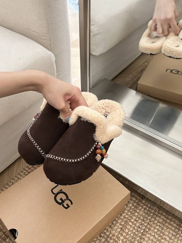 Ugg新款穆勒串珠吊坠拖鞋,别致斜边设计,卷毛高级感十足 颜色:栗色 咖色。菜籽色 码数35-40。