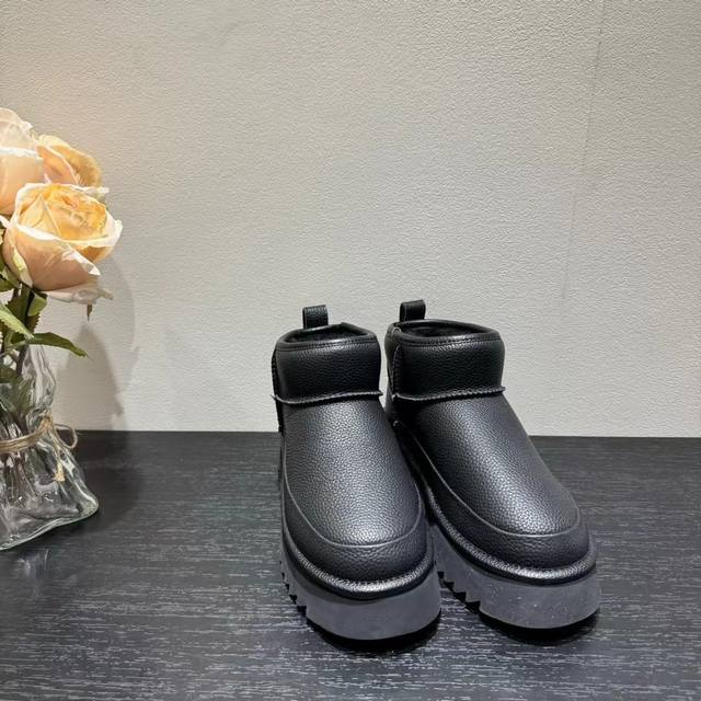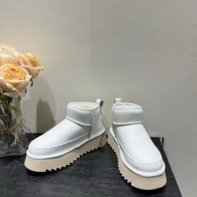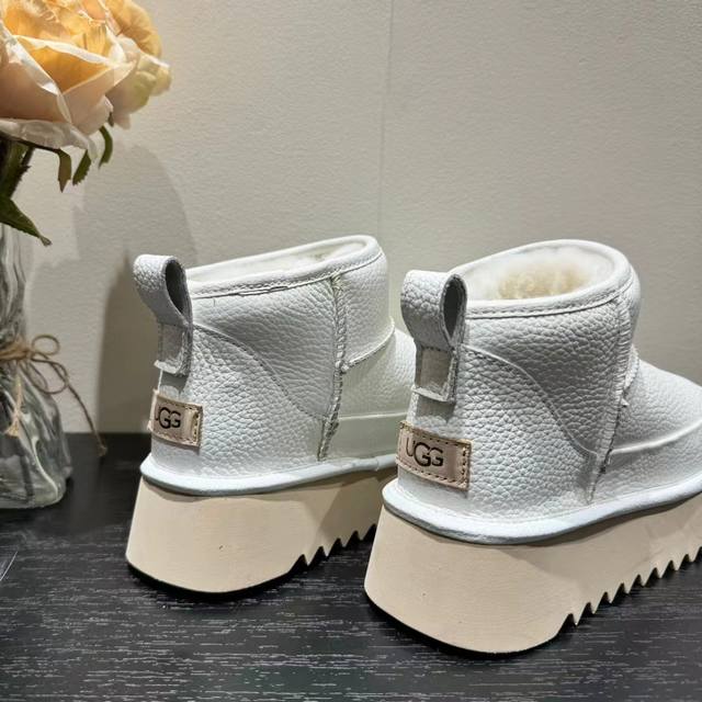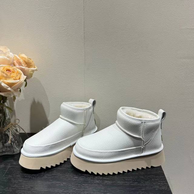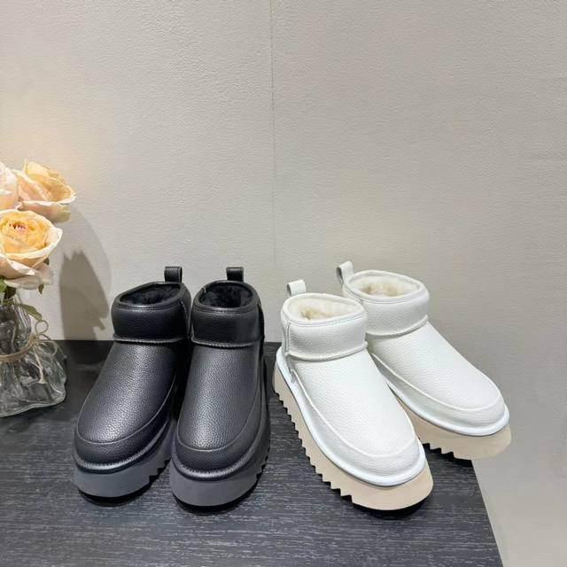 Ugg新款!荔枝纹牛皮面,3.5厘米齿轮大底,加厚羊毛大底, 海外版,黑色,白色 码数:36-41码!