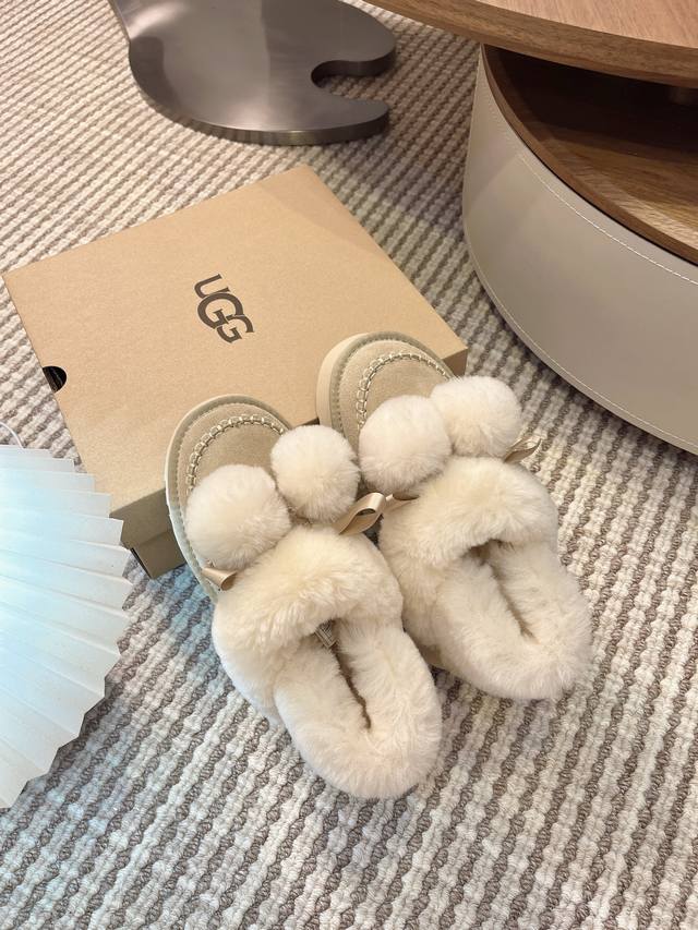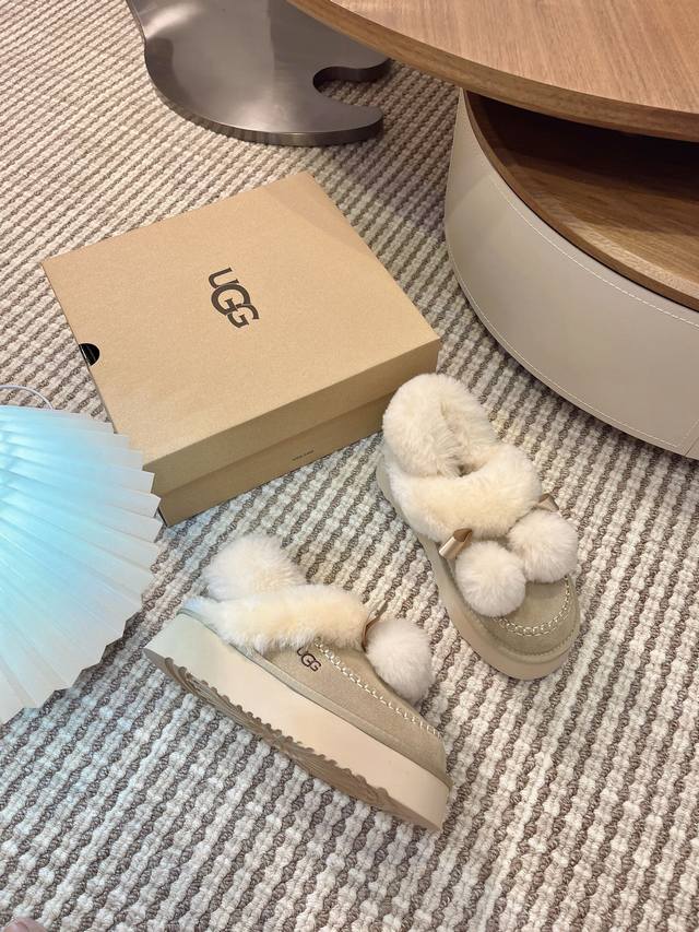 Ugg毛球雪地靴、秋冬爆款、厚底保暖、多色可选、皮毛一体、时尚百搭、萌趣毛球装饰、显高显瘦、户外防滑、居家外穿两用、网红同款、保暖神器、潮流单品 冬日软萌奶油系