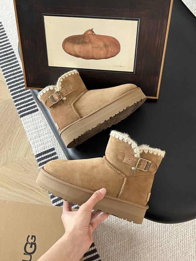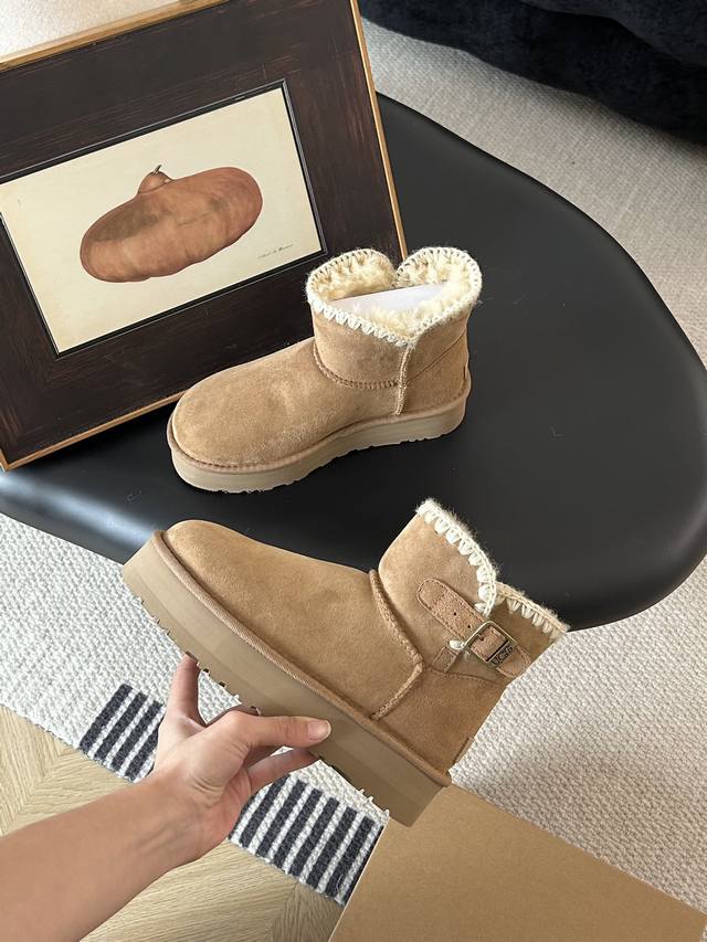 Ugg毛线编织厚底系列 金属小扣饰 皮毛一体 小女神喜欢的可爱款。 两色,栗色。羚羊。码数,35-40码!