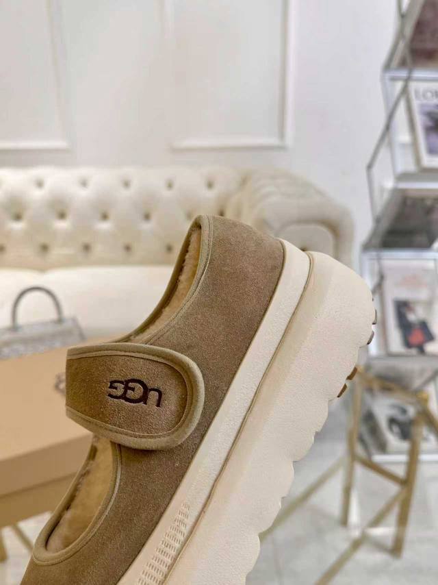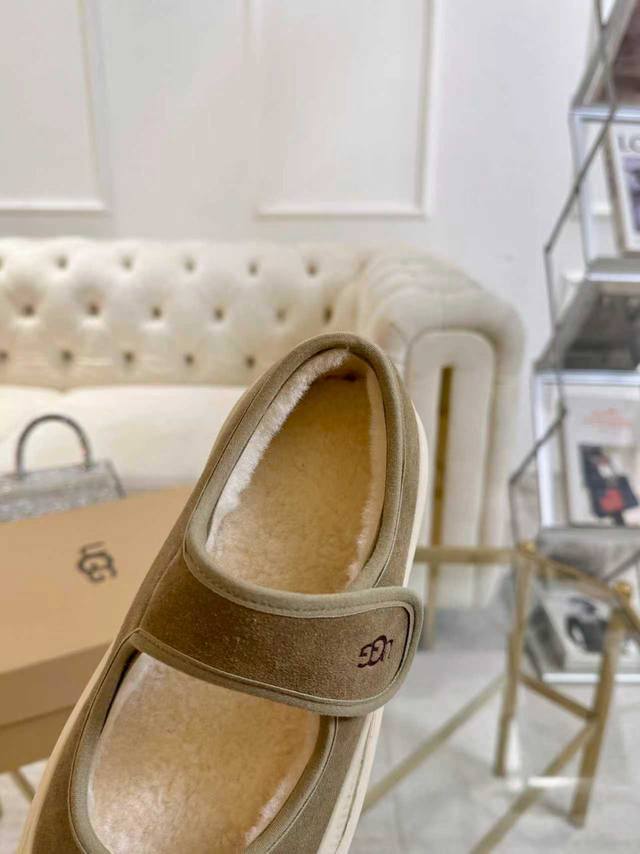 Ugg秋冬上新毛毛鞋,翻毛牛皮面料,鞋底是原版鞋底开模,不是便宜的橡胶发泡,是Modern材质,这种材质的特征是轻便、耐磨又防滑。大底有清晰的Logo压印,媲美