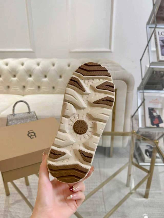 / Ugg秋冬上新毛毛鞋,翻毛牛皮面料,鞋底是原版鞋底开模,不是便宜的橡胶发泡,是Modern材质,这种材质的特征是轻便、耐磨又防滑。大底有清晰的Logo压印,媲美