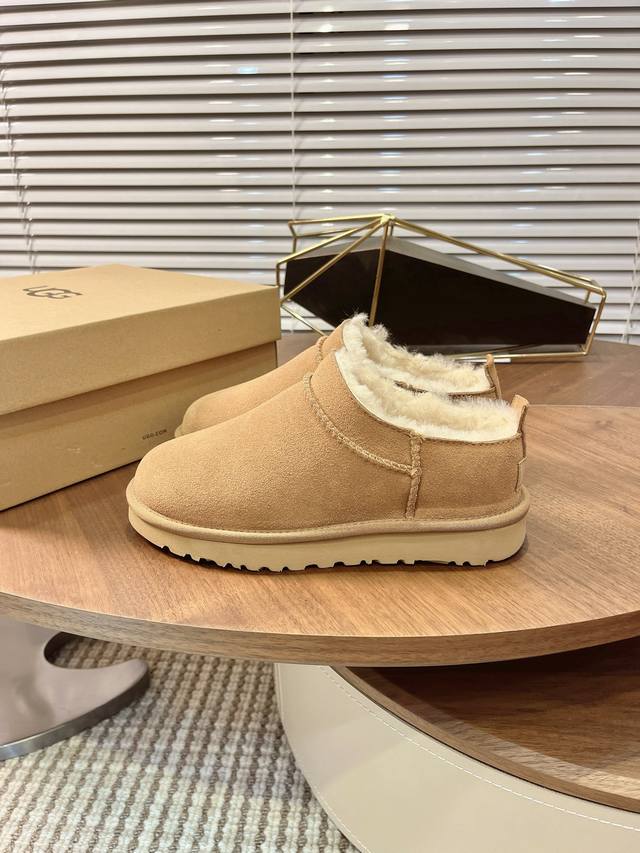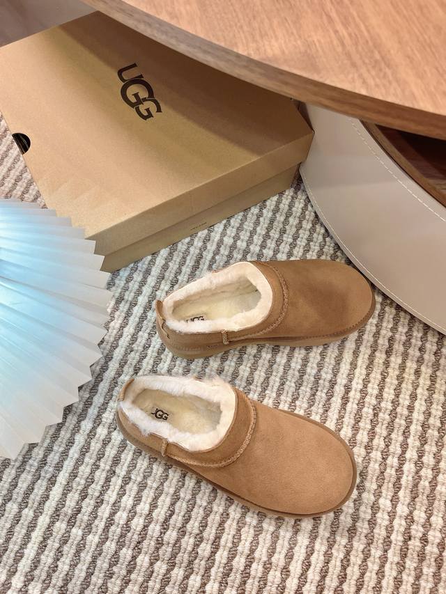 Ugg秋冬新款女式时尚舒适休闲经典超迷你雪地靴明星同款 一脚蹬羊毛拖 毛毛鞋 款号:1173891。 颜色:黑色 栗色 沙色 浅橡棕色 码数:35-41