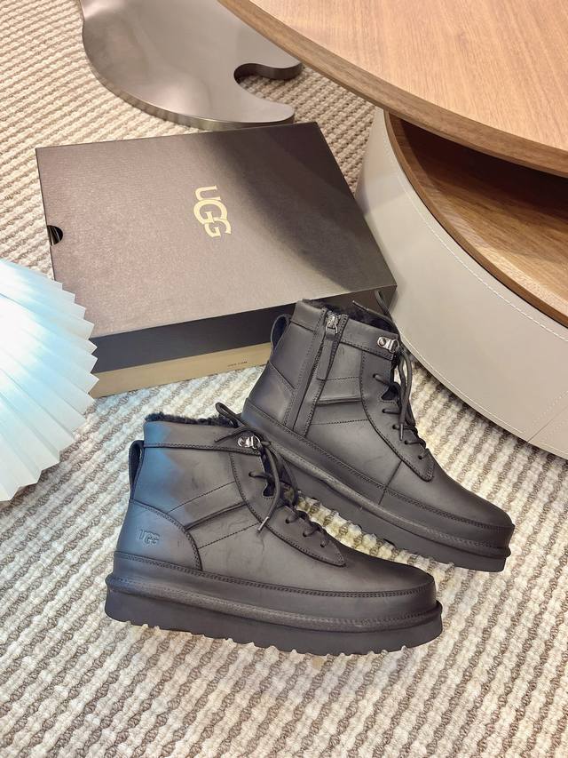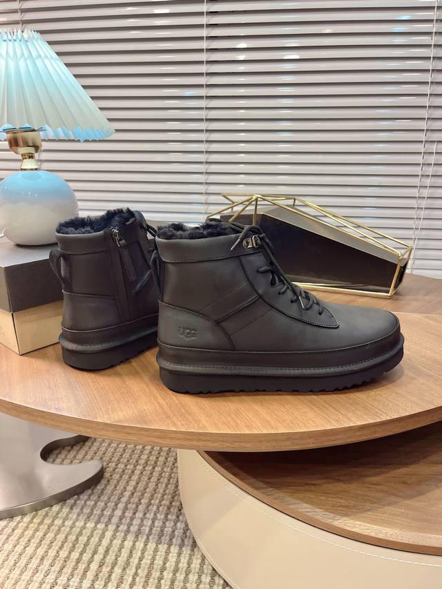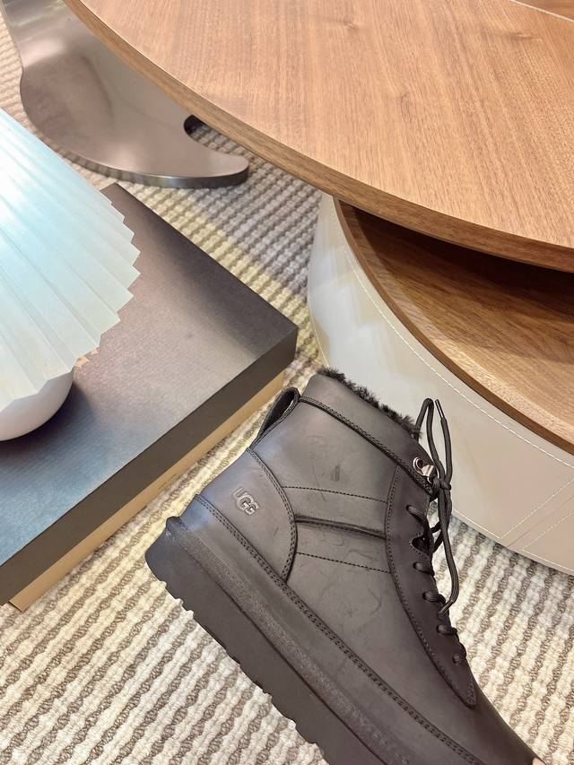 Ugg秋冬新款 男士超保暖马丁靴,男款毛毛雪地靴 时尚休闲鞋 舒适百搭 完全不挑人 鞋面牛皮 内里进口澳洲羊皮毛一体 超级保暖 尺码39-44