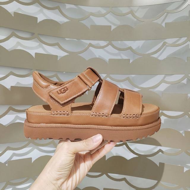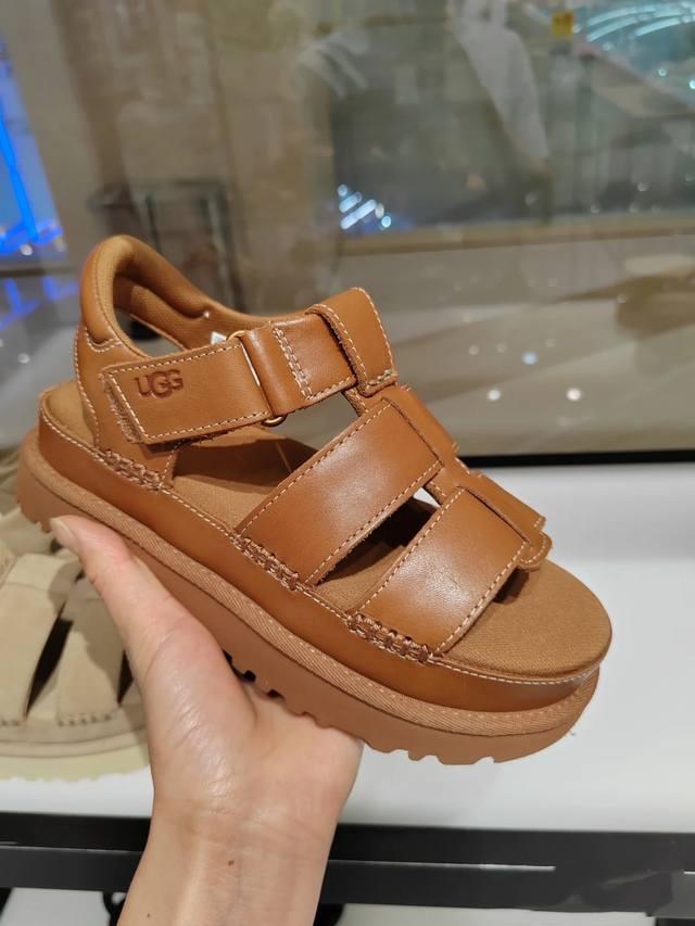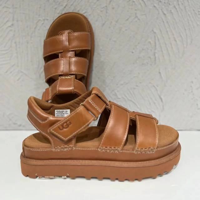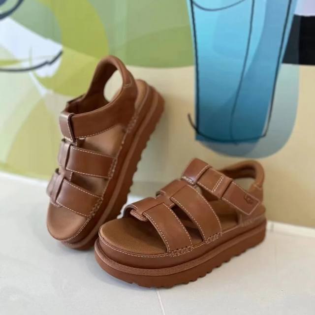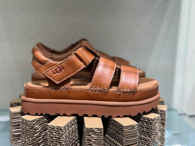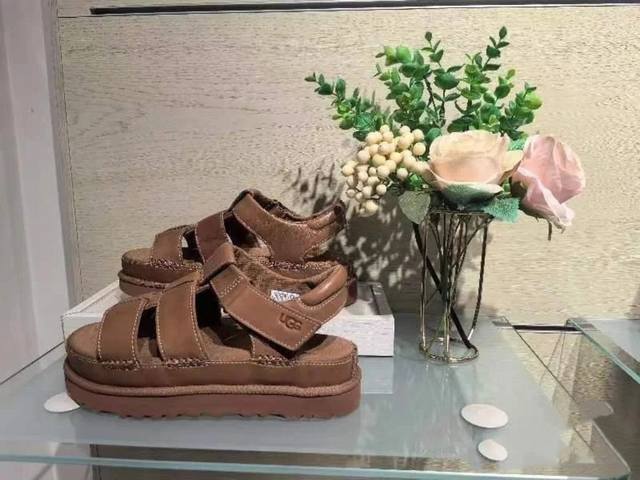 Ugg经典罗马金星凉鞋来咯,剁手都要买一款凉鞋,天气越来越热了出门踏青还得是凉鞋舒服呀,这回不下手不行了,2个颜色都很好搭配 牛刨层革材质,鞋面舒适透气,质感满