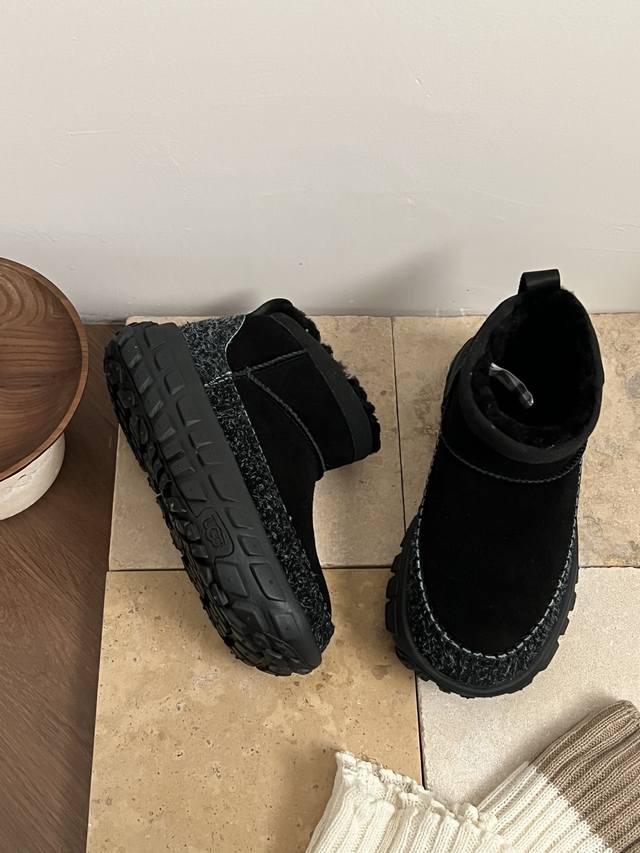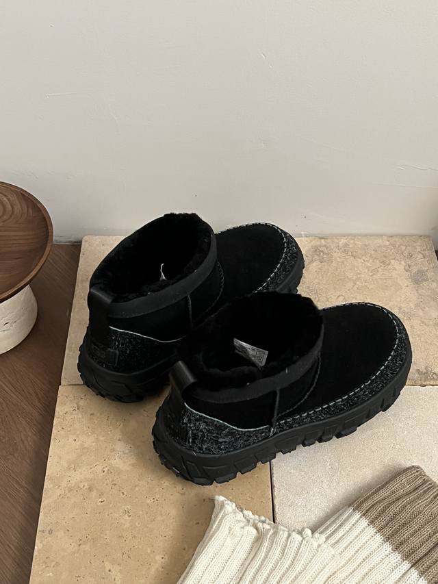 / Ugg轮胎底超短靴 材质:牛剖层革 羊皮毛 外底:橡胶 Uggplush‘内衬、鞋垫 鞋面 翻毛皮鞋面 鞋底 耐用橡胶外底 Size:35-40