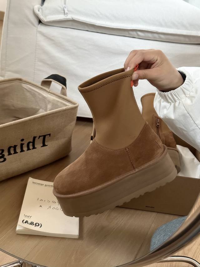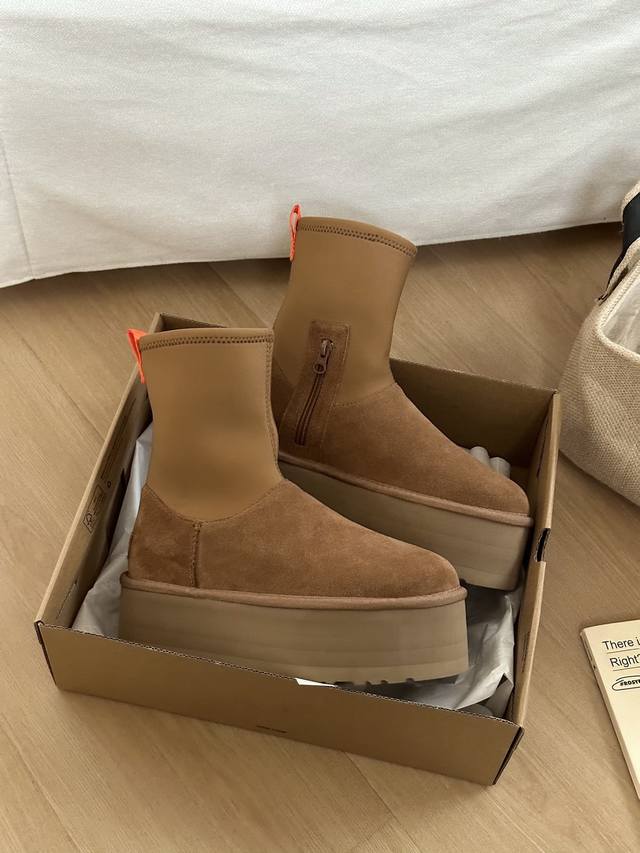 Ugg迪普靴~ 鞋面牛皮革+羊毛内里 专柜1.5厚度弹力布,拉链设计方便穿脱 5Cmeva鞋底轻质缓震~ Size:35-40