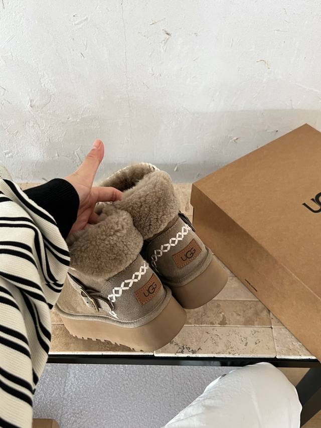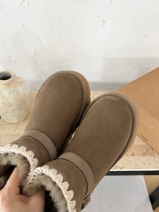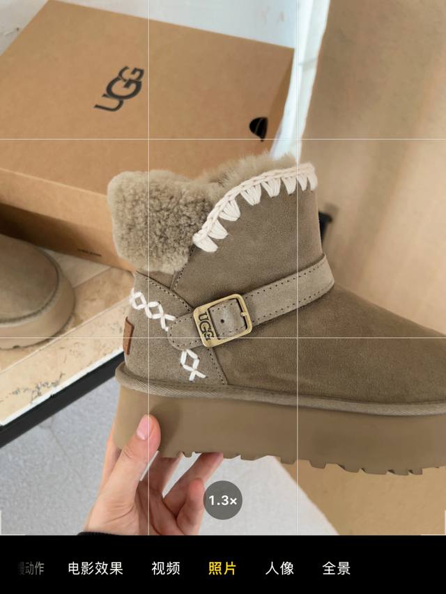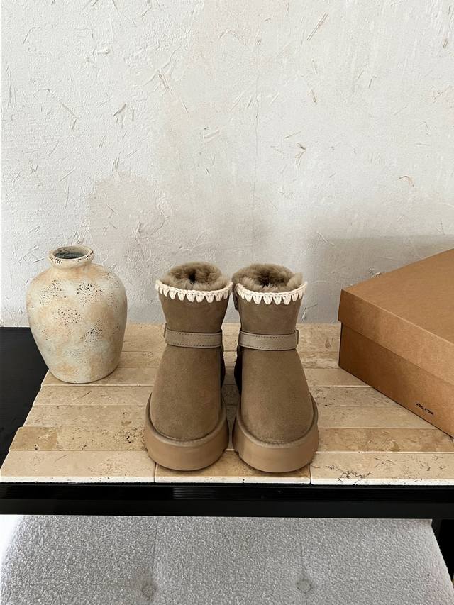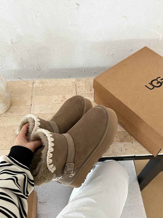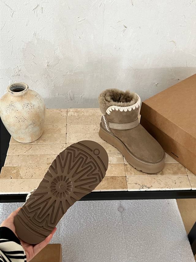 Ugg雪地靴|编织细节+翻毛圈,秋冬保暖时尚我全要 谁能拒绝这双细节感拉满的Ugg雪地靴啊! 编织花边+金属扣设计,甜酷又精致,打破雪地靴的沉闷感; 翻毛圈领口